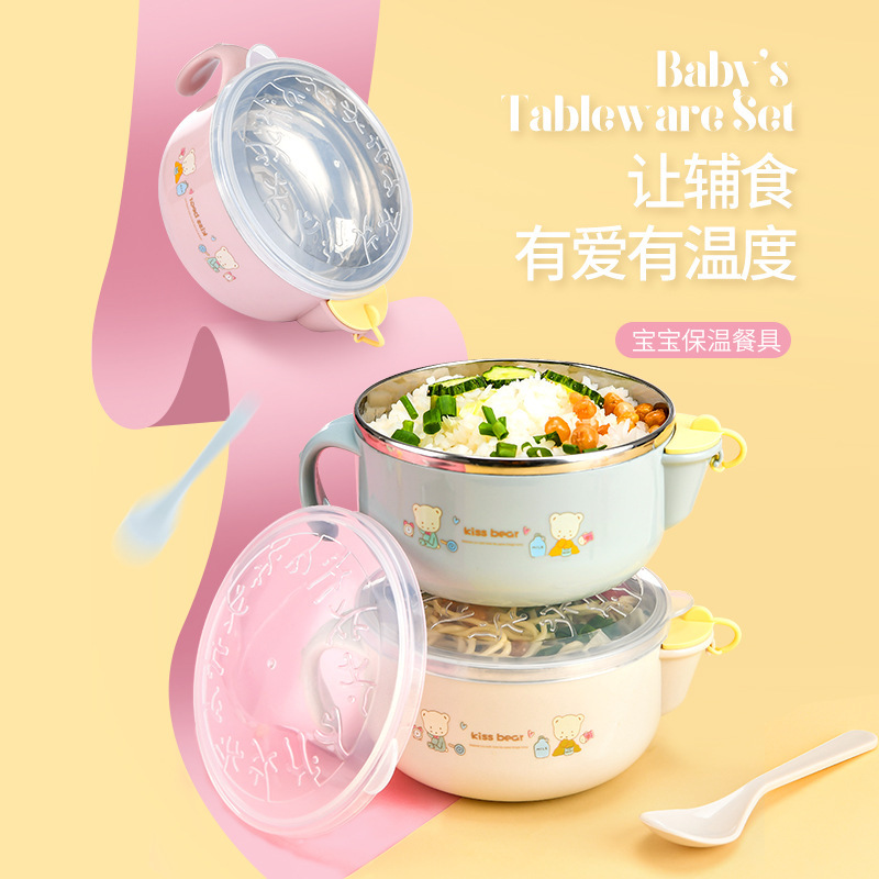 新型子供用食器注水保温碗ベビー補助碗ステンレス蓋付き転倒防止子供用小鉢