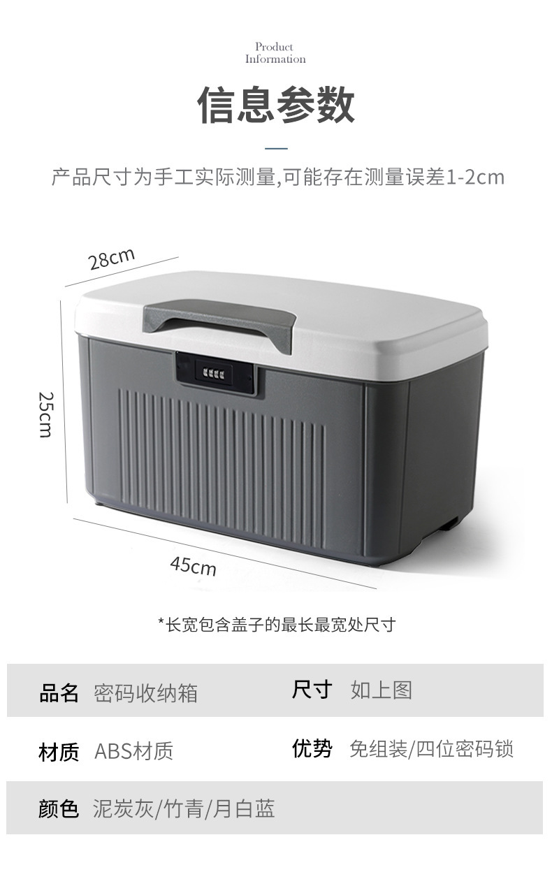 パスワード収納ボックスプライバシーファイル証明書付き家庭用ロック収納整理箱付き厚手材質収納ボックス