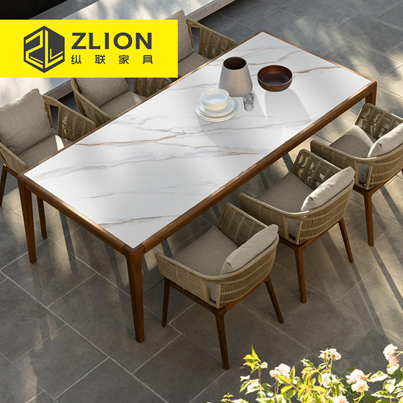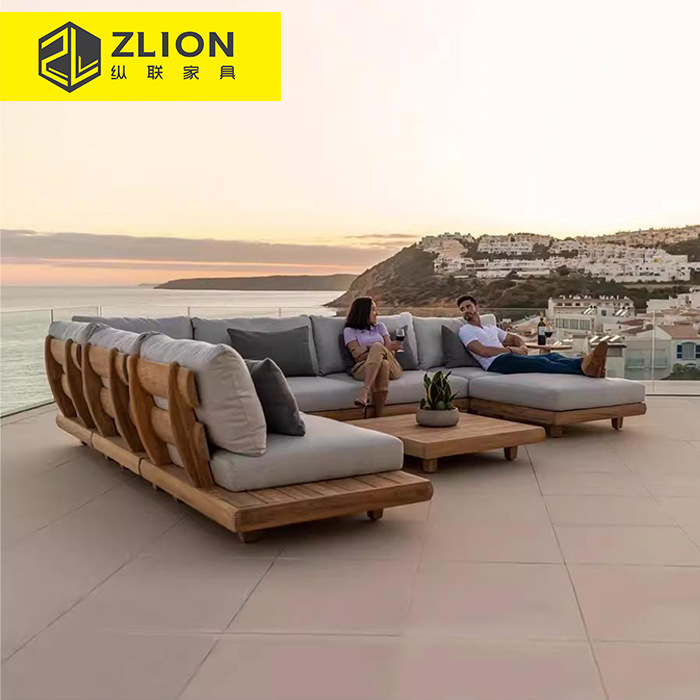 国境を越えた屋外庭園別荘民宿ホテル大型テラス無垢材ソファ屋外庭園防水チーク材ソファ