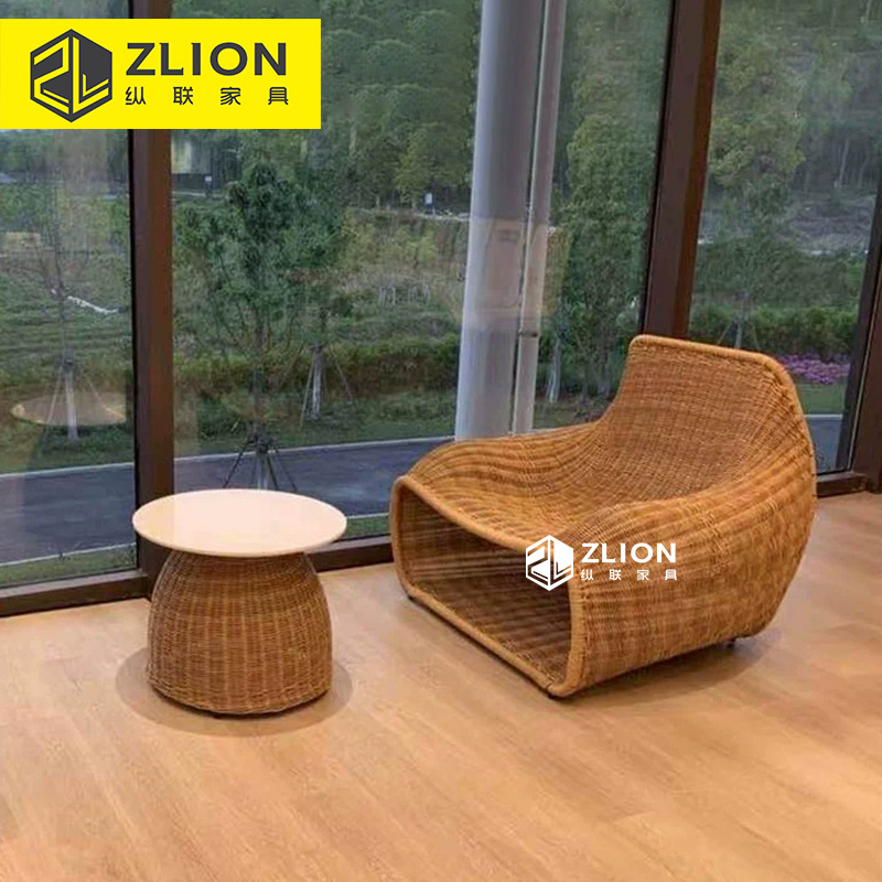 屋外編藤ソファーバルコニー花園庭園レジャー藤椅子露天民宿ホテル客間一人花ソファー