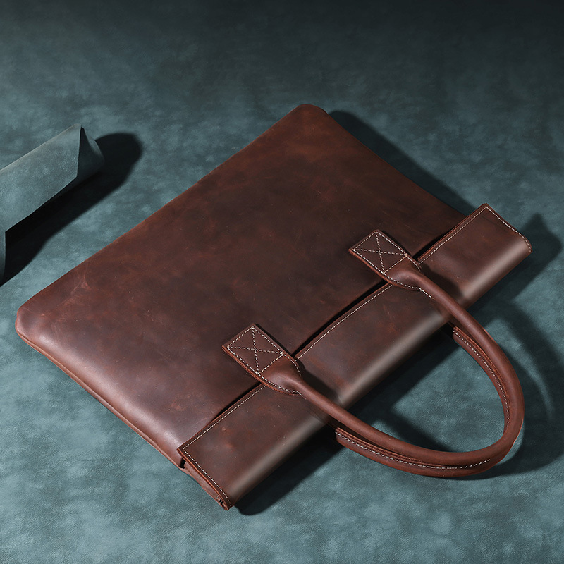 新型15.6インチノートパソコンバッグ狂馬牛皮手提げブリーフケースビジネスレトロ本革タブレット男性バッグ