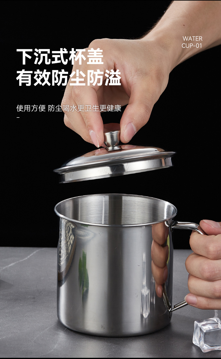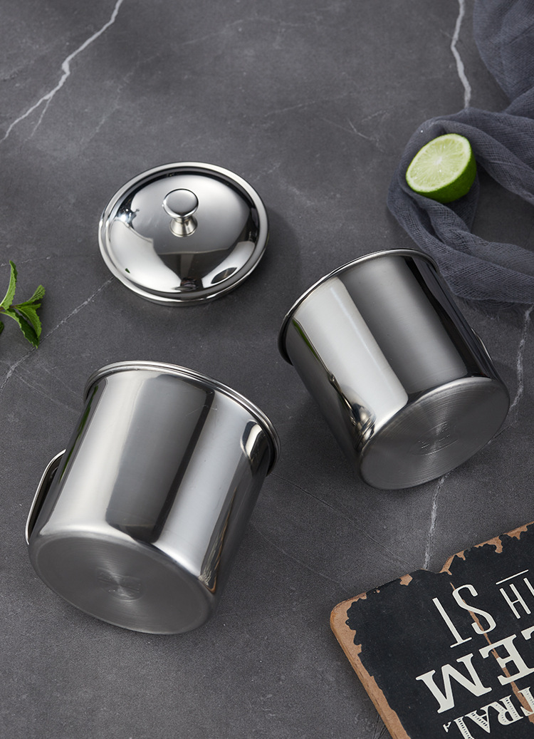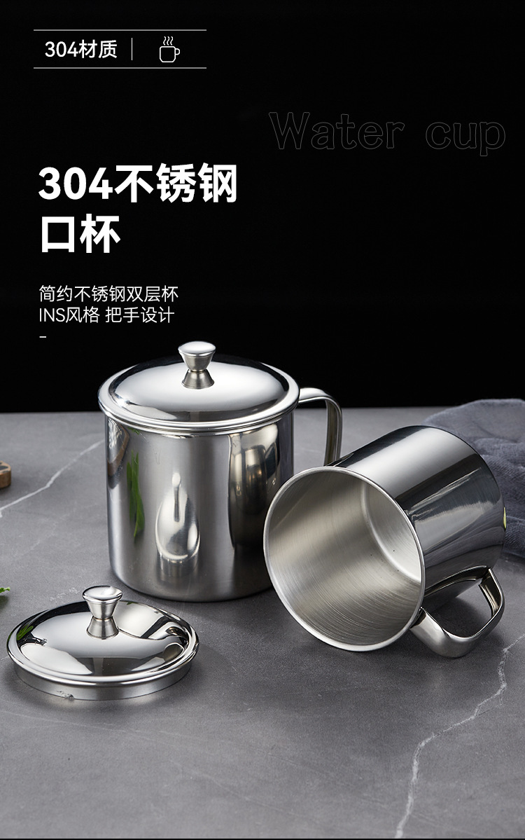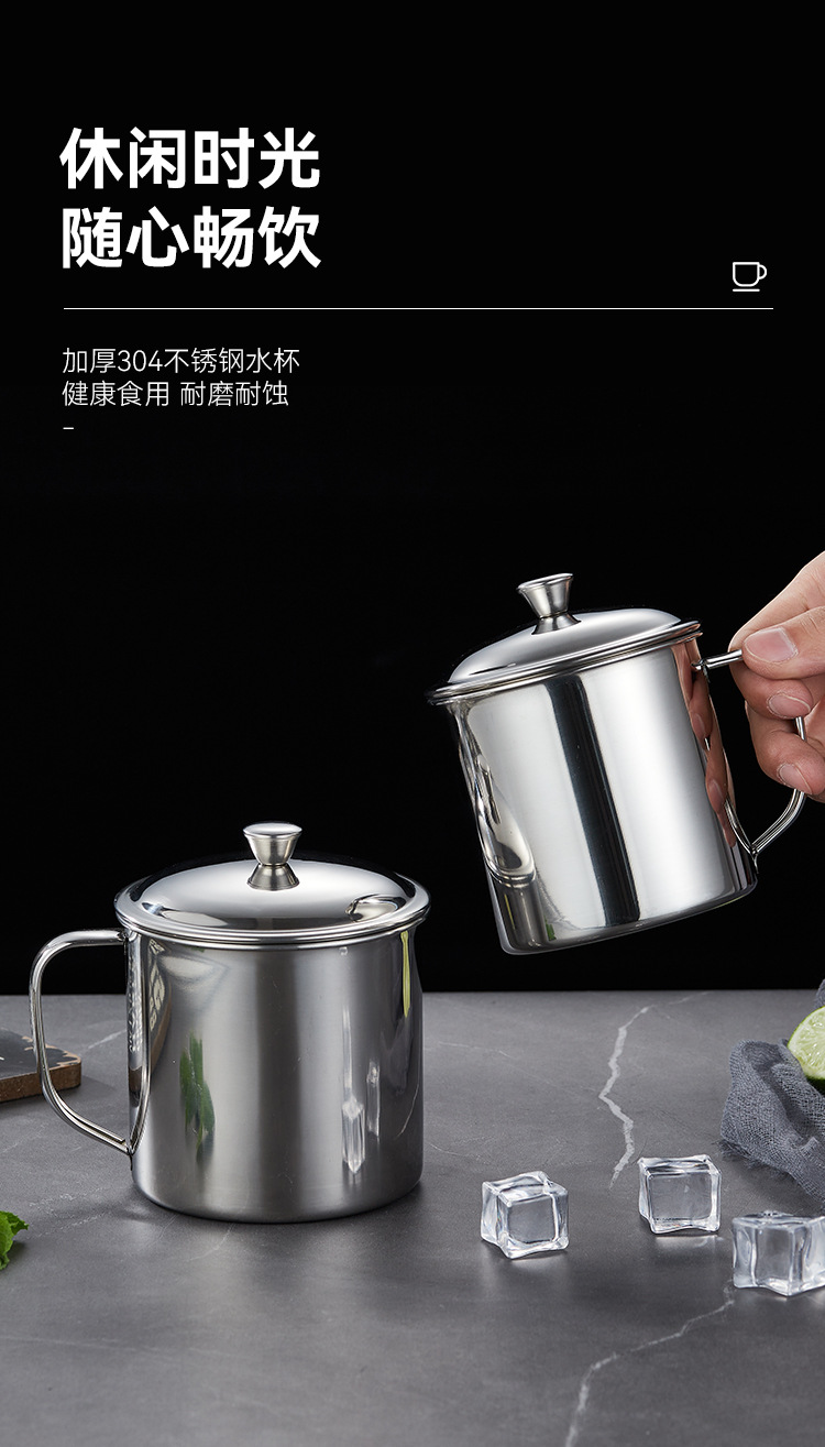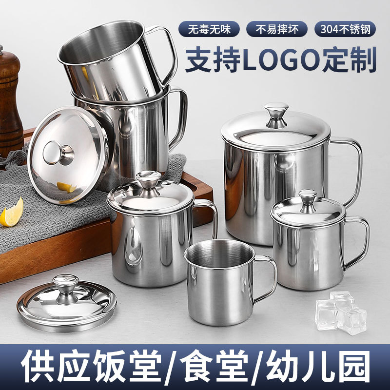 304ステンレスカップ取っ手付きコップ業務用蓋付きコップ付き茶筒幼稚園児童転倒防止カップ