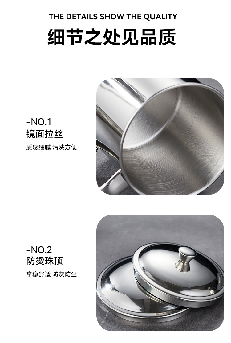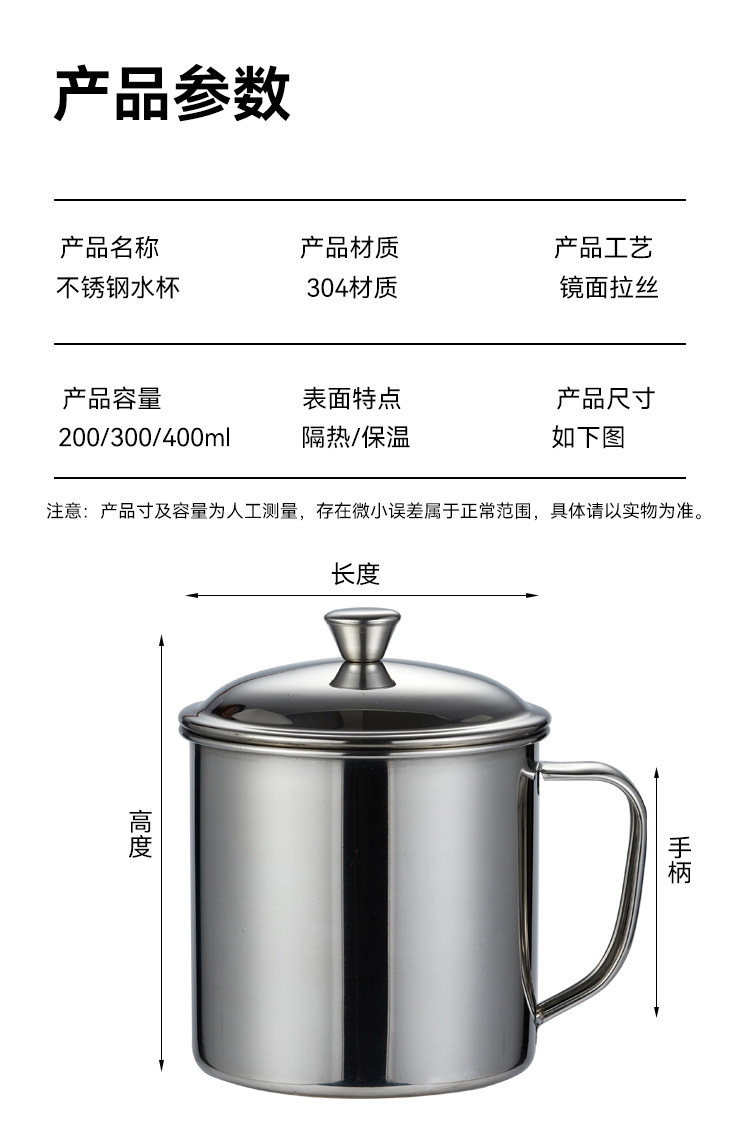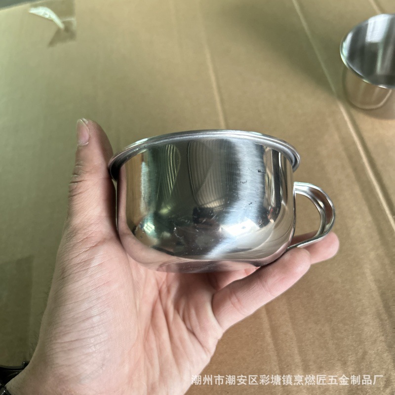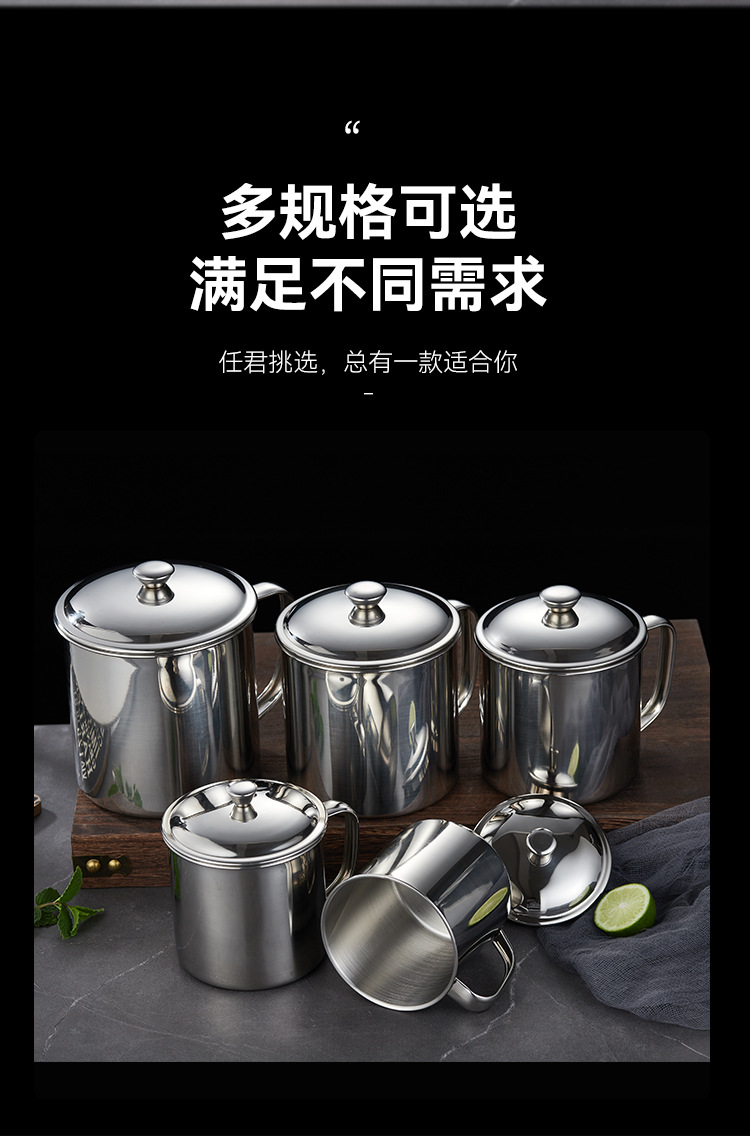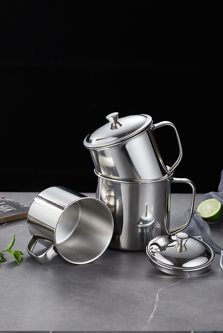 304ステンレスカップ取っ手付きコップ業務用蓋付きコップ付き茶筒幼稚園児童転倒防止カップ
