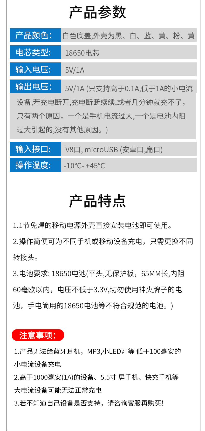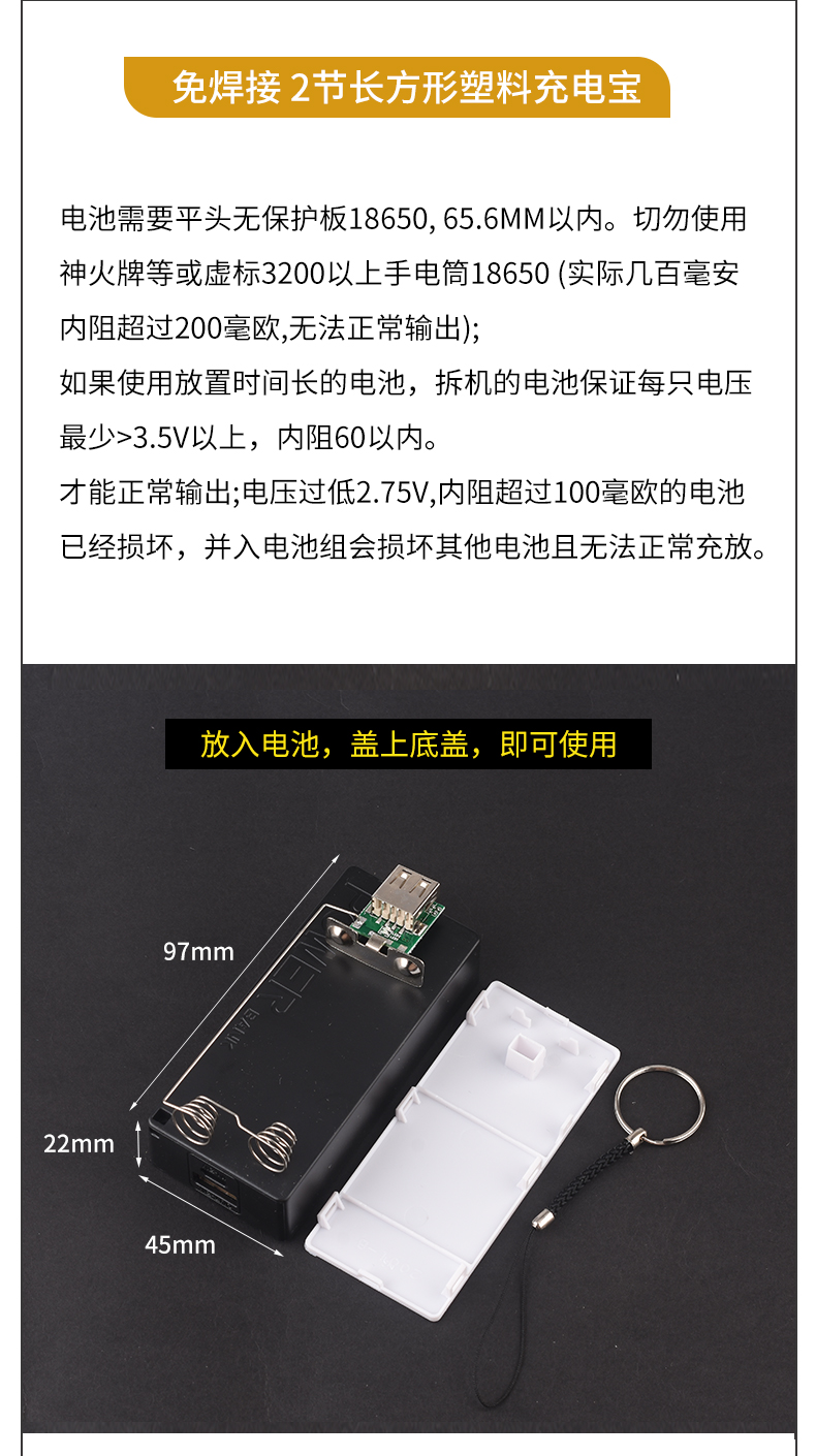 只能适配标准尺寸的18650平头电池,尖头的尺寸对不上,不可以使用!!!