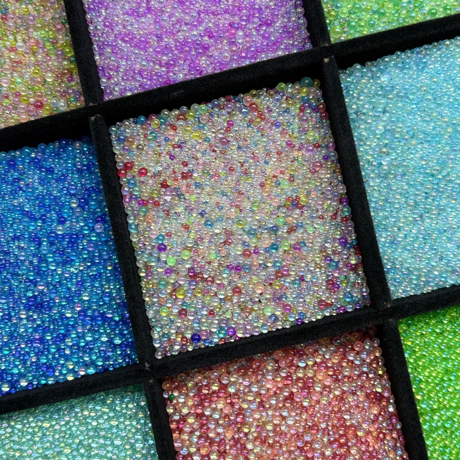 ガラス気泡ビーズ穴なし小さなボールビーズ手作りDIY透明幻彩ネイルビーズ水泡ビーズ