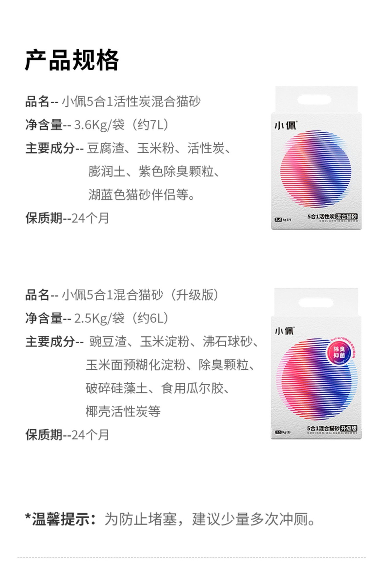 小/佩5合1混合猫砂活性炭消臭低塵3.6kg豆腐砂ベントナイト団箱全体出荷