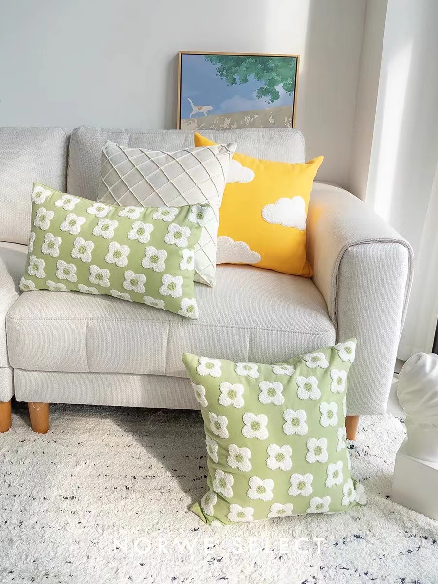 ネット紅ins風抹茶四葉草紅書推薦刺繍高品質客間ソファー抱枕クロスボーダー対外貿易