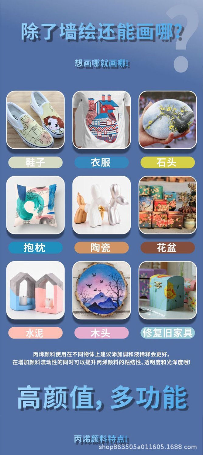 アクリル顔料500ml大瓶画室壁絵防水日焼け止め色落ちしない100ml落書き美術顔料卸売り