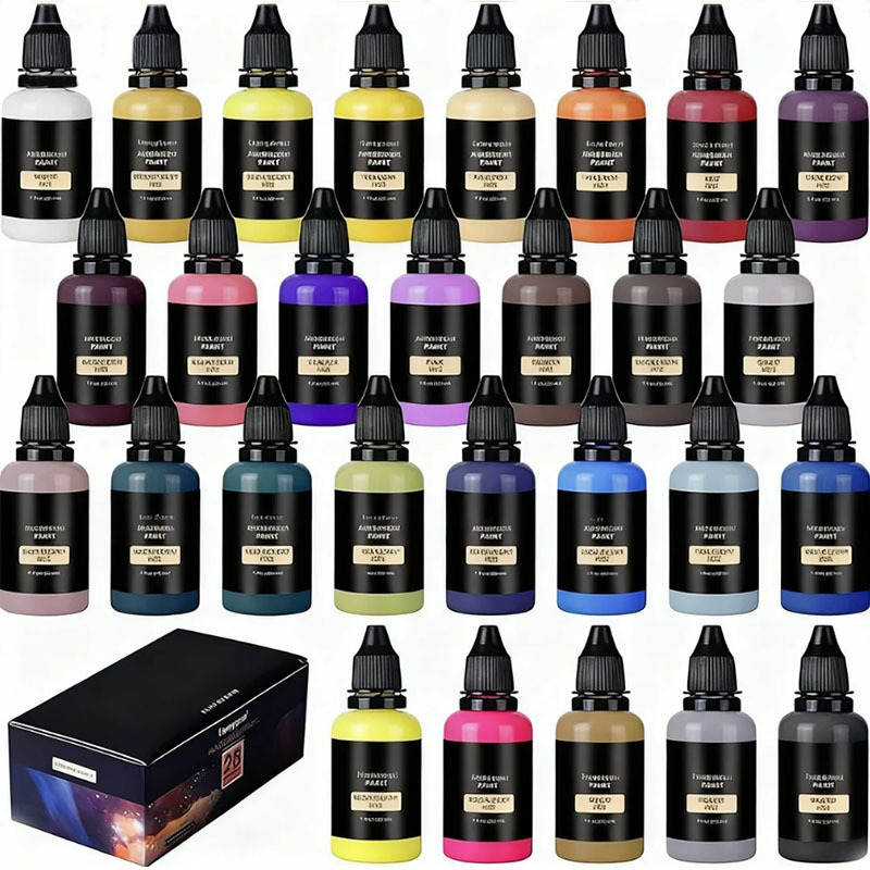 喷枪颜料28色含2瓶稀释剂水性丙烯喷枪颜料金属模型上色喷涂画画
