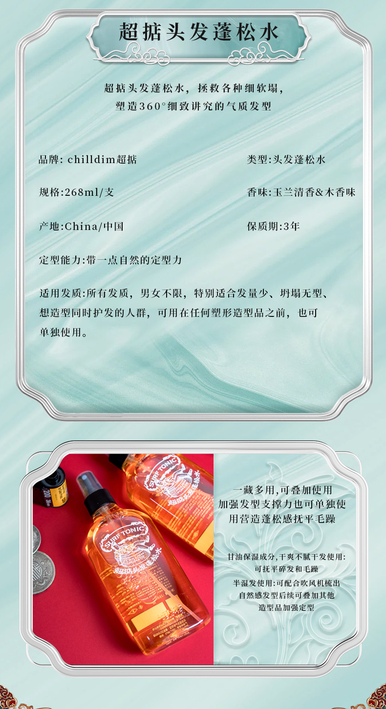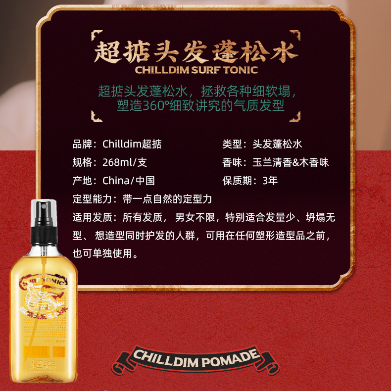 Chilldin超は、ヘアゴムの定型スプレーを考えています。男性と女性の接着剤のジェル水の持続的な定型の清香は自然に300mlです。