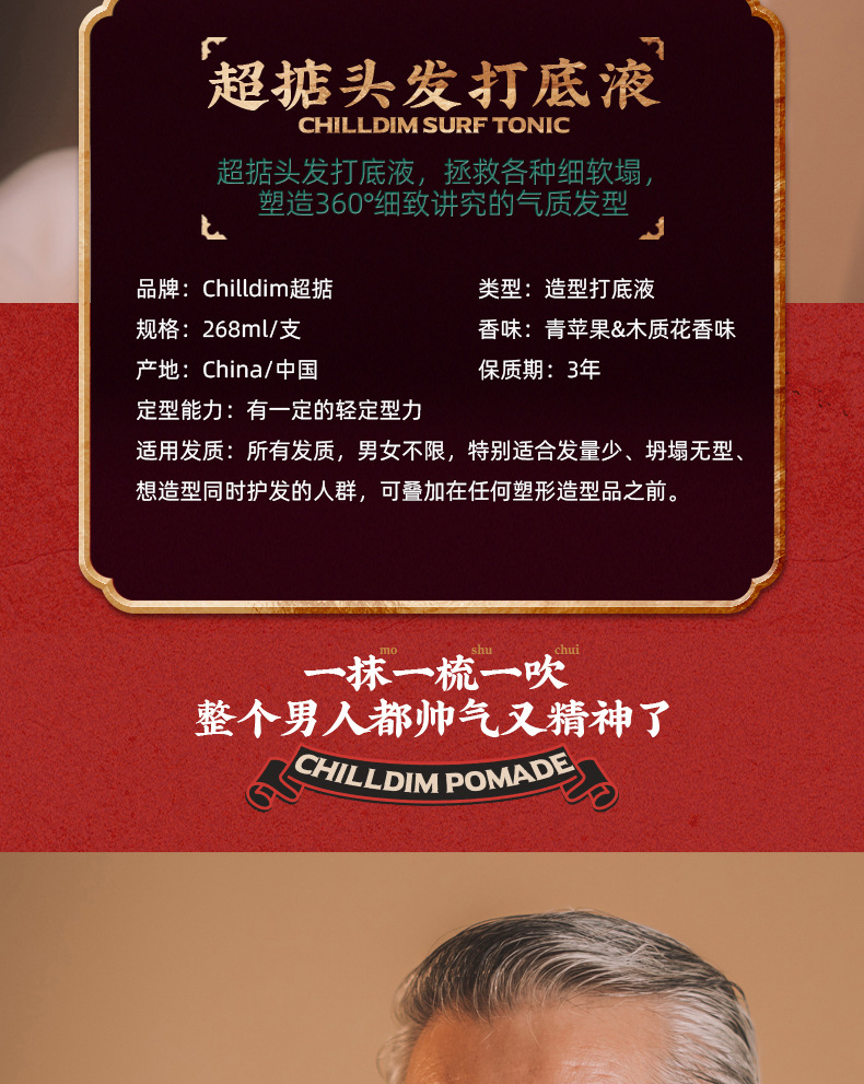 Chilldin超は髪油男性セットの水基ワックスの泥がふわふわしている水ジェルの髪油クリームを量っている