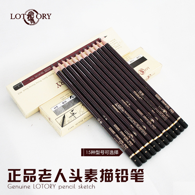 老人の頭の鉛筆の2h-12bの鉛筆の箱の全体のスケッチの鉛筆の絵の鉛筆の文房具は木炭のペンを書きます。