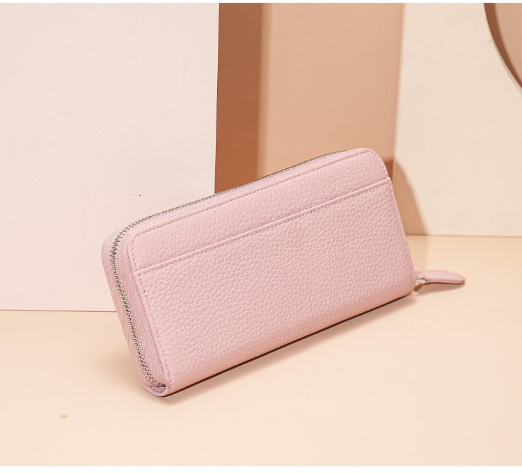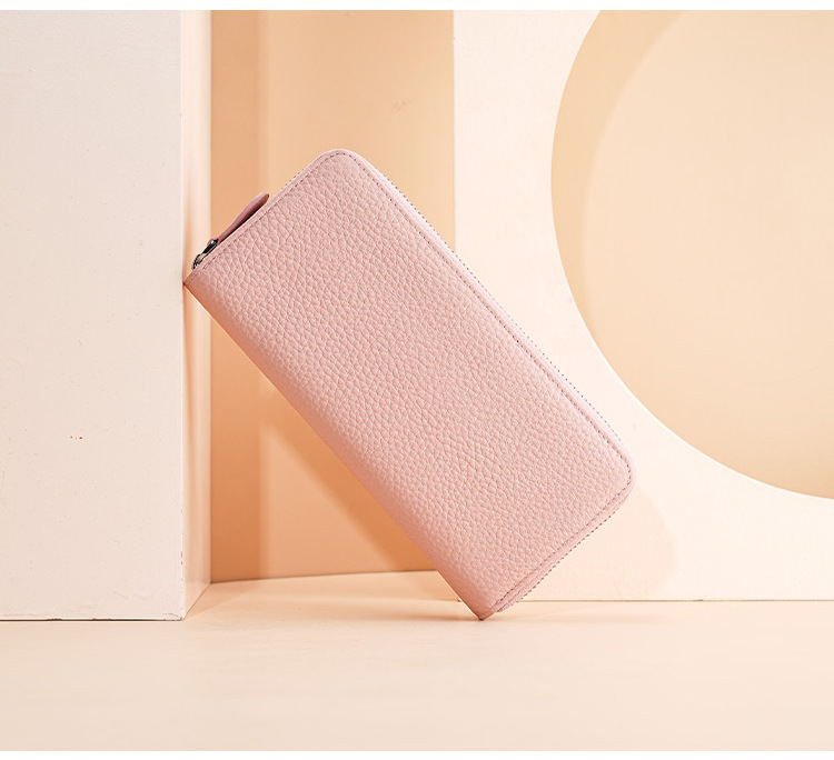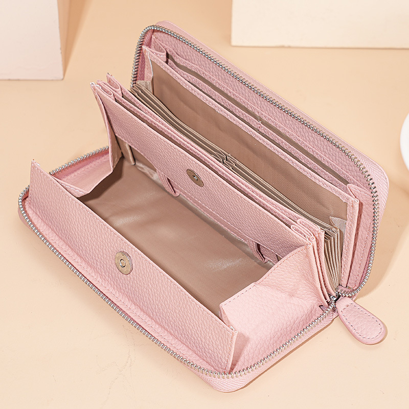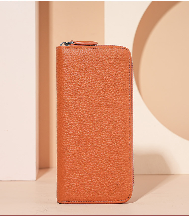 本革レディースロングジッパーライチ柄牛革日本手持ち财布日本式长い木レディースwallet