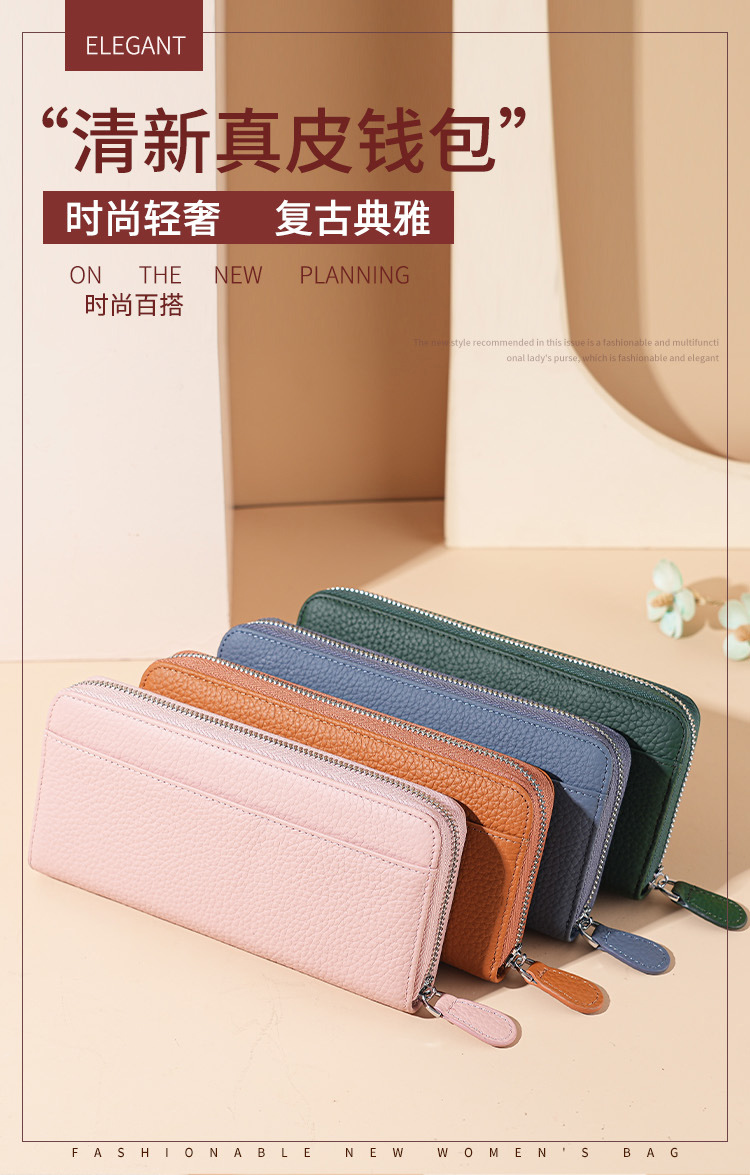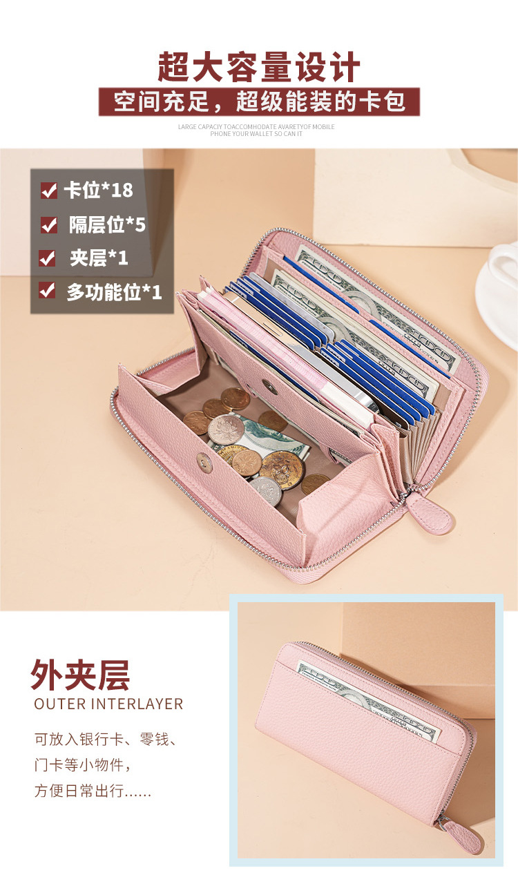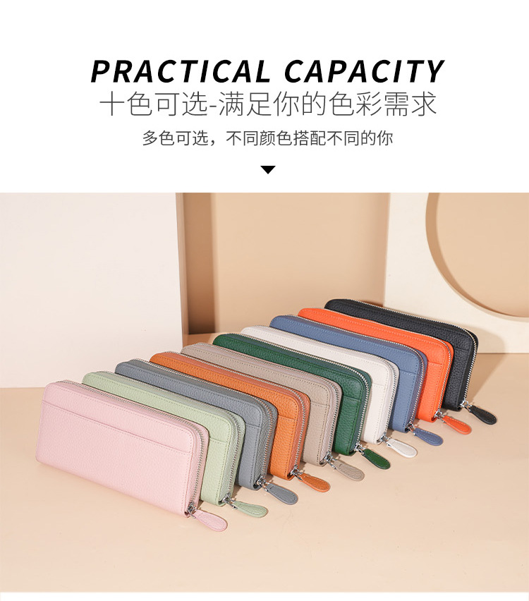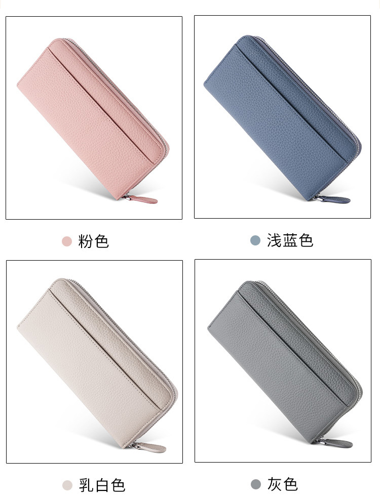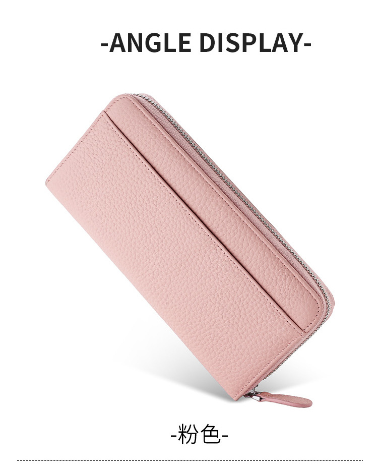 本革RFID磁気防止盗難防止ブラシ財布女性長型七字ジッパーファッション手は財布を持って携帯電話の小銭を入れることができる