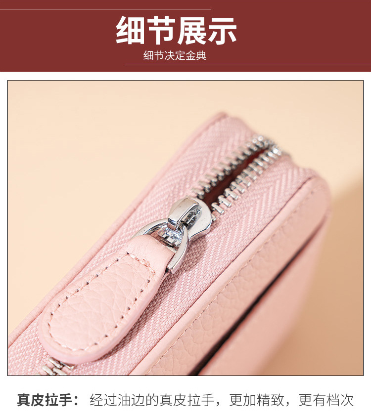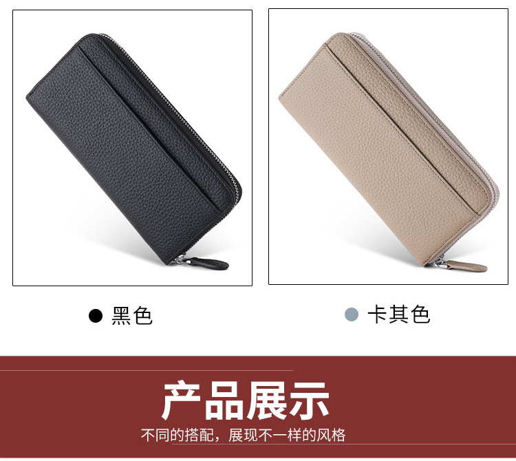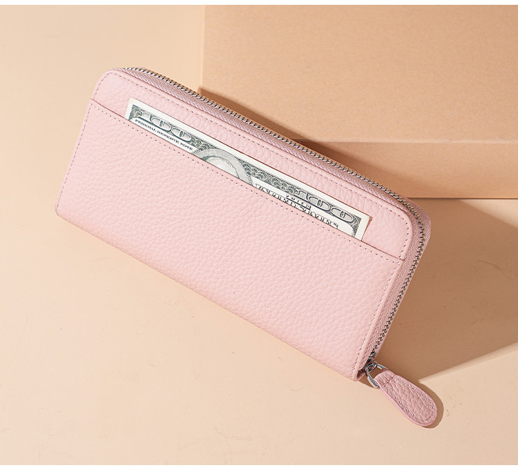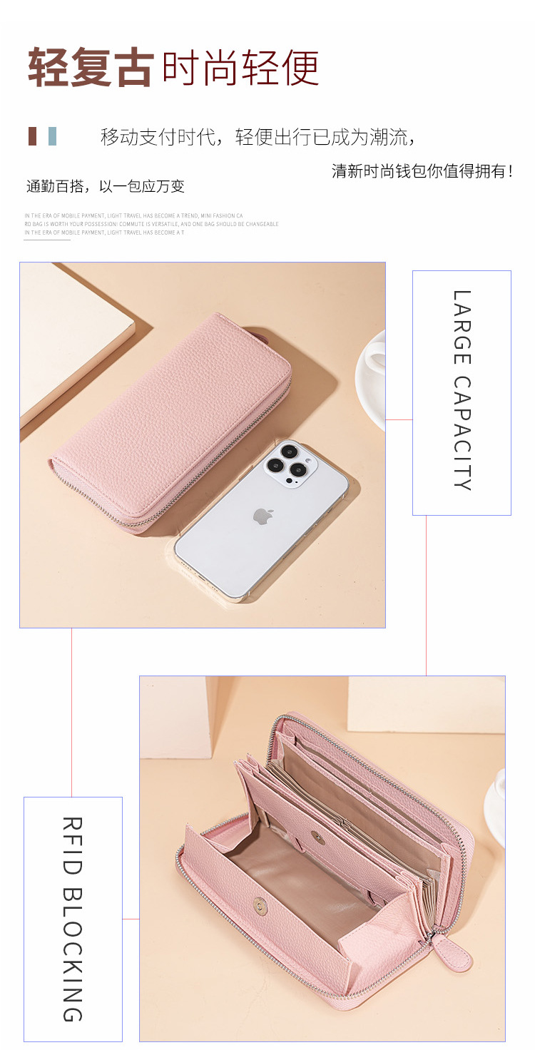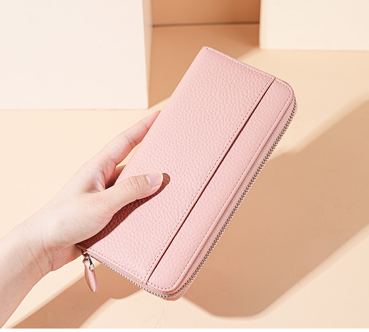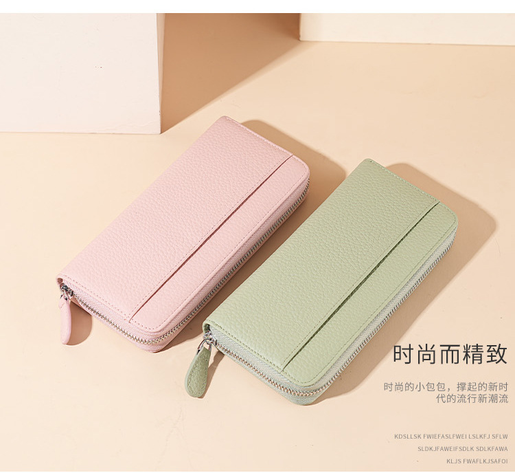本革RFID磁気防止盗難防止ブラシ財布女性長型七字ジッパーファッション手は財布を持って携帯電話の小銭を入れることができる