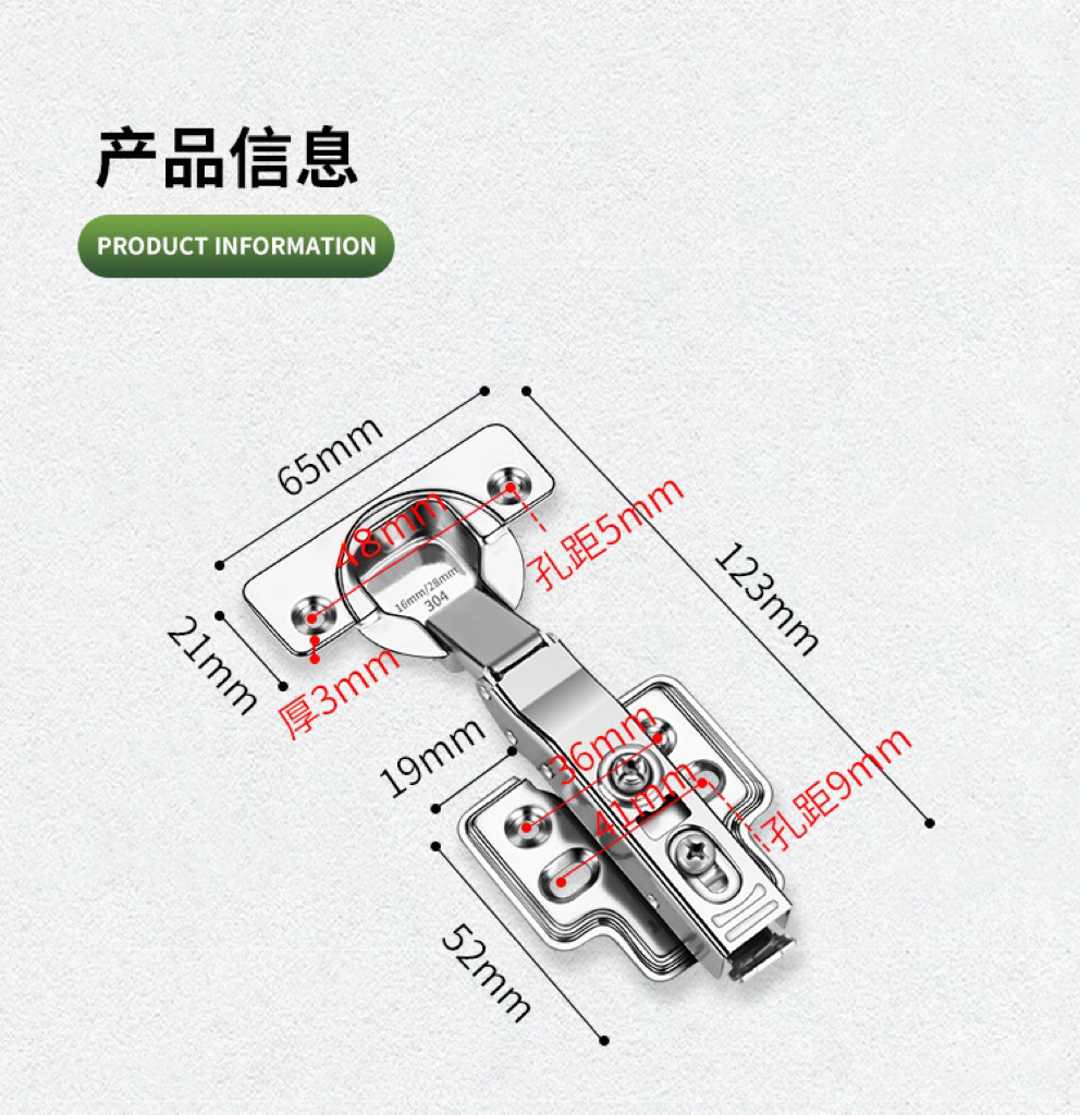 304ステンレス二段力小角度全ダンプヒンジクッション35杯ゼロ角度厚ドアプレート共通ヒンジ