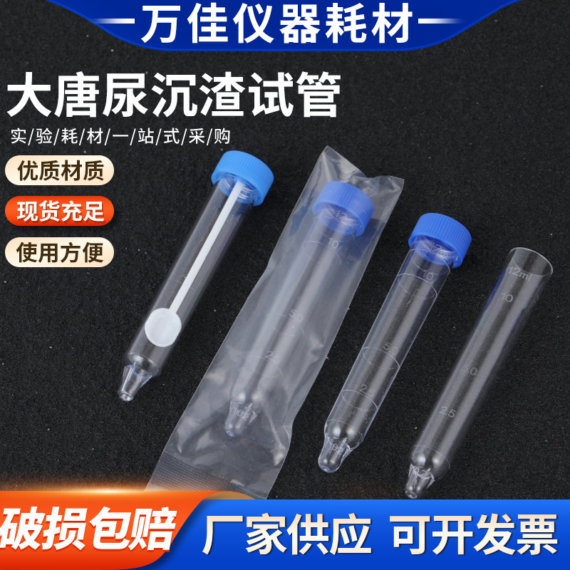 尿沉渣管12ml螺口带盖尿检尿液存放管尖底带刻度透明试管ps