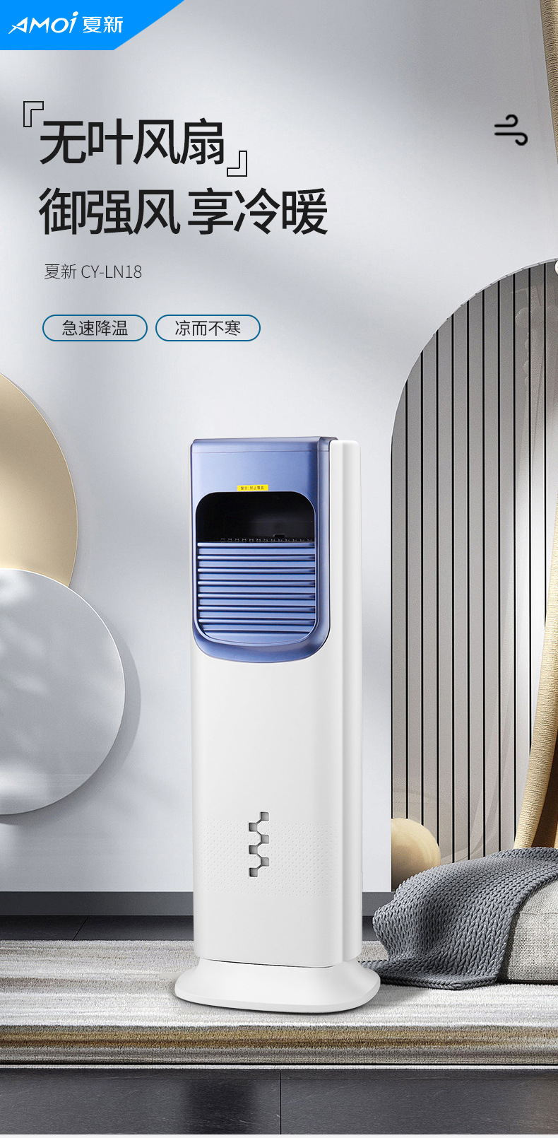 5A 冷暖房両用空調ファン家庭用ヒーター垂直ヒーターブレードレス空冷ファン冷風機冷却水冷