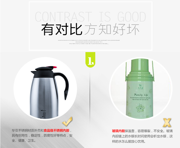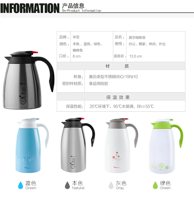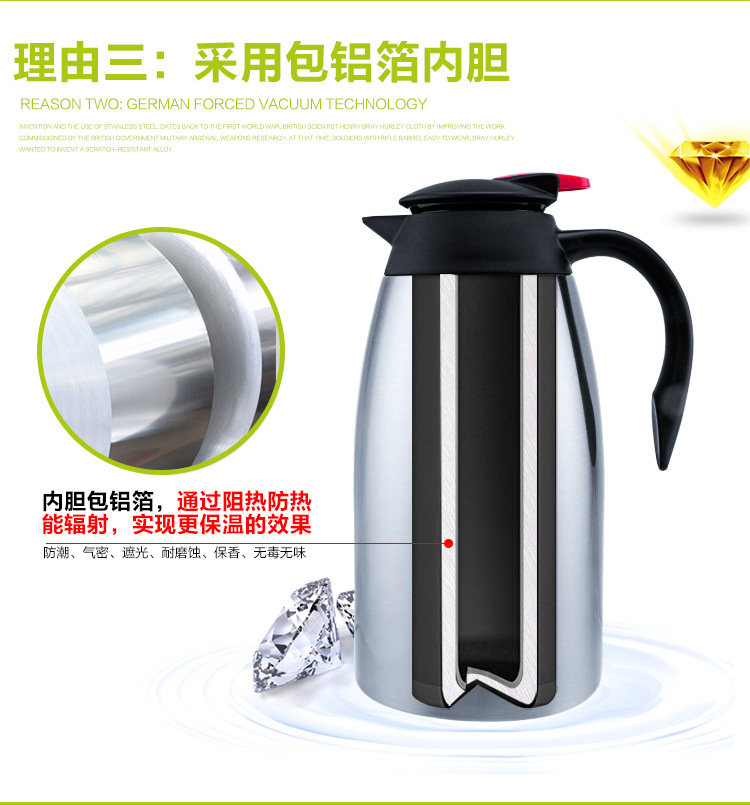 華亜コーヒーポット304ステンレスHK-2000保温ポット真空大容量家庭用保温ポット2リットル保冷ポット