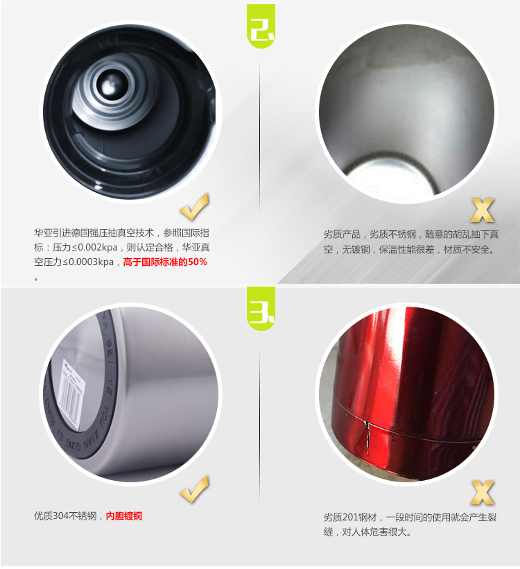 華亜の新型316ステンレス真空大容量のティーカップの学生のコップの弾頭の保温カップは携帯します。