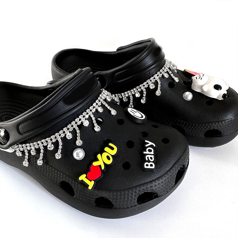 洞靴アクセサリーカラードリル宝石チェーン靴花真珠チェーンdiyスリッパ装飾ボタンが取り外し可能