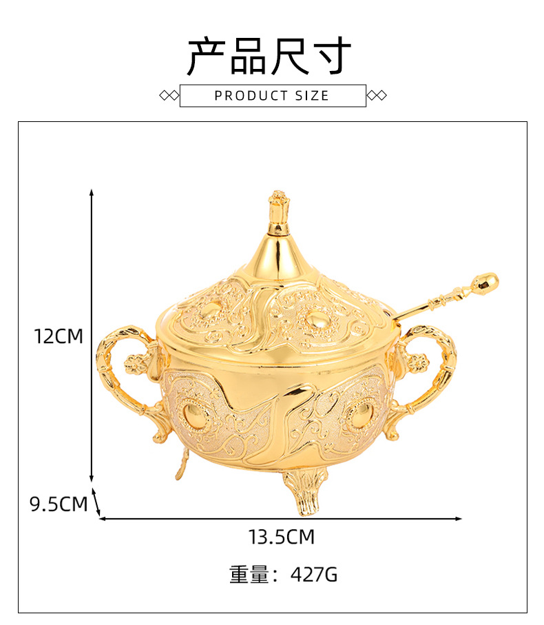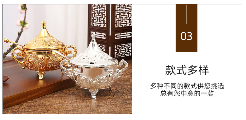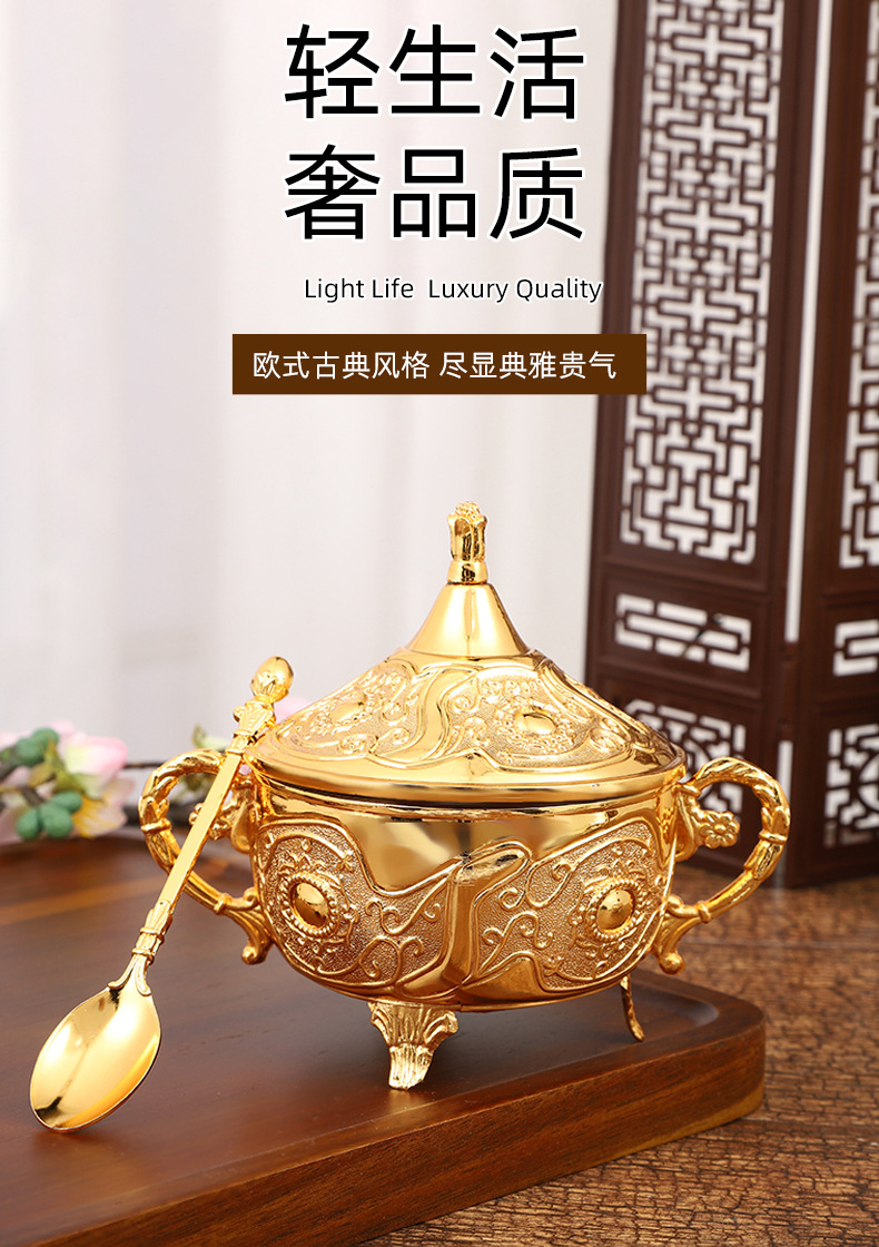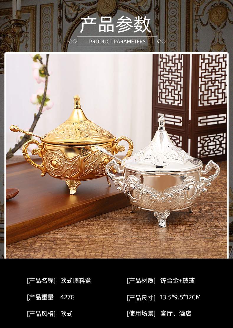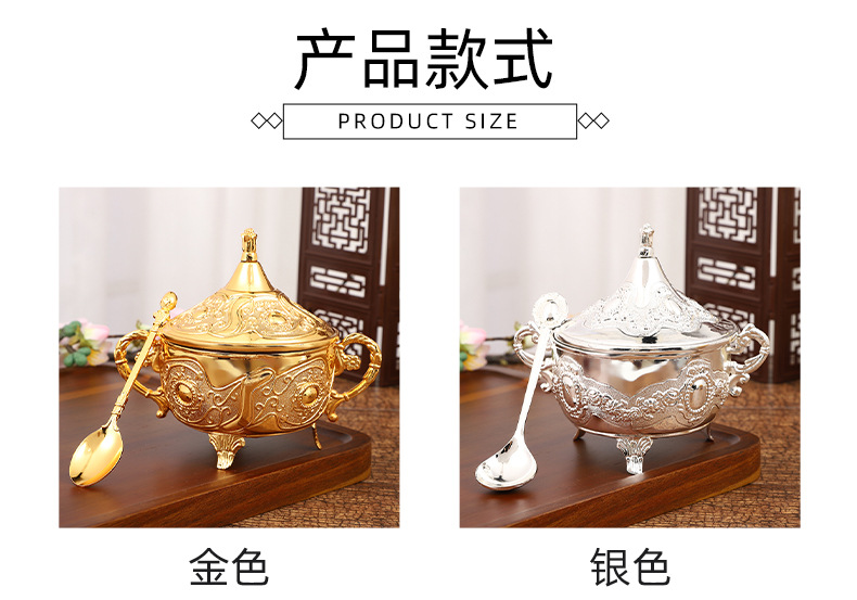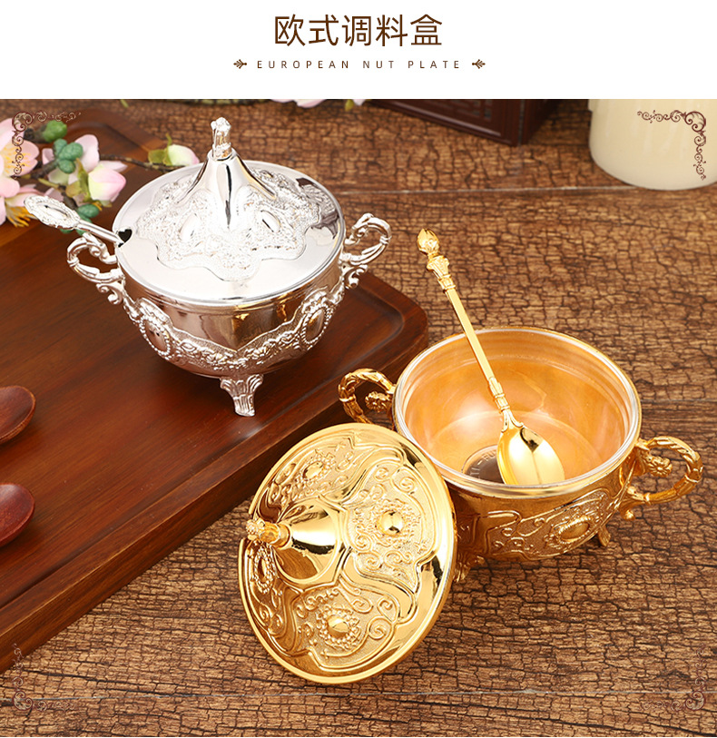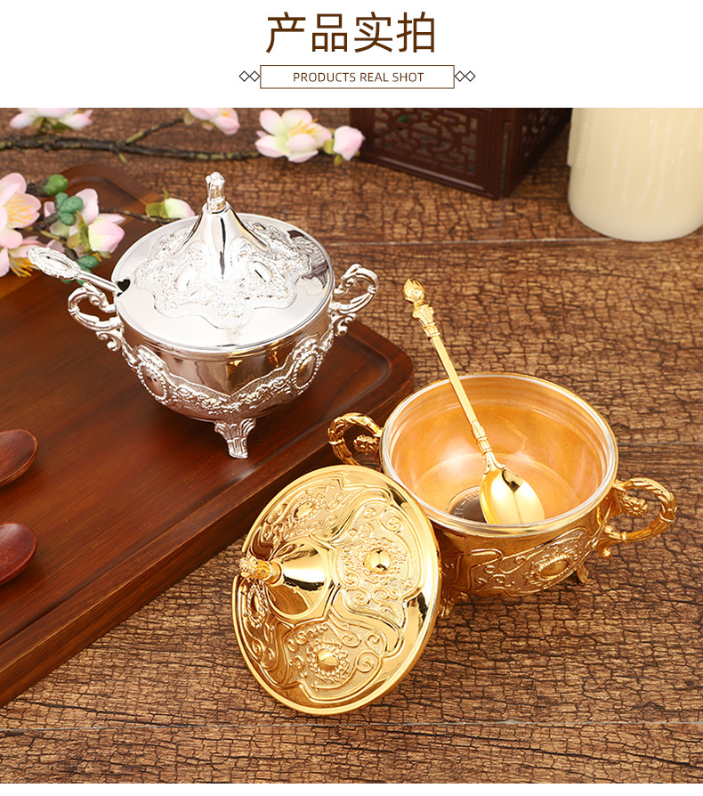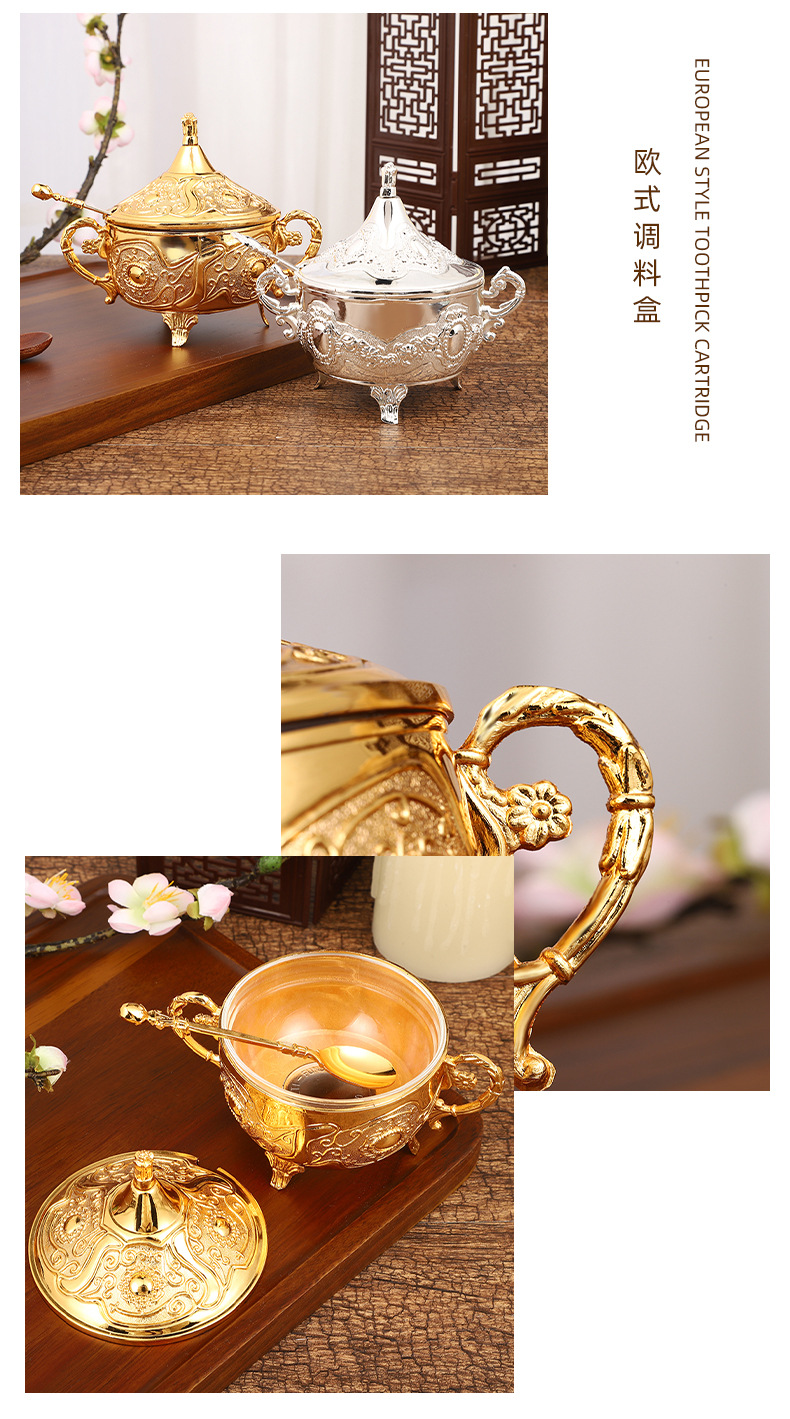 ヨーロッパの砂糖の杯のアイデアのファッションの砂糖の杯の調味料の瓶のレストランの台所の日用品の金の銀色の花のあめ