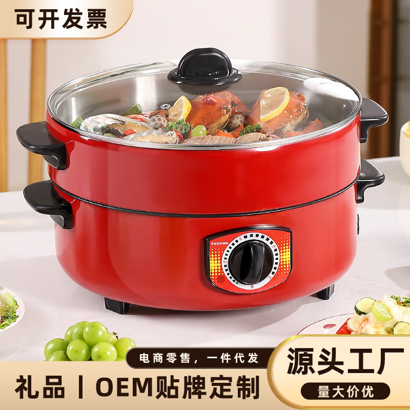 电煮锅多功能宿舍学生不粘锅家用电热火锅带蒸格蒸煮一体一件代发