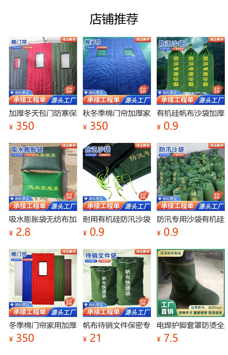 洪水防止専用の砂袋を厚くしてキャンバスを加工します。