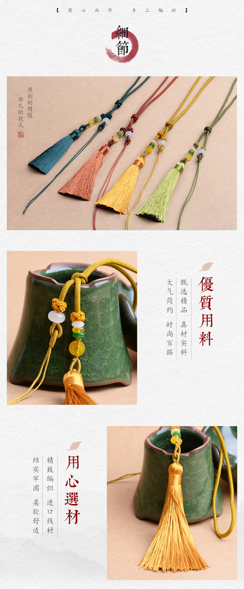 Diy携帯ストラップ中国風携帯チェーンキーホルダーストラップストラップ半製品手作り編みペンダントロープ