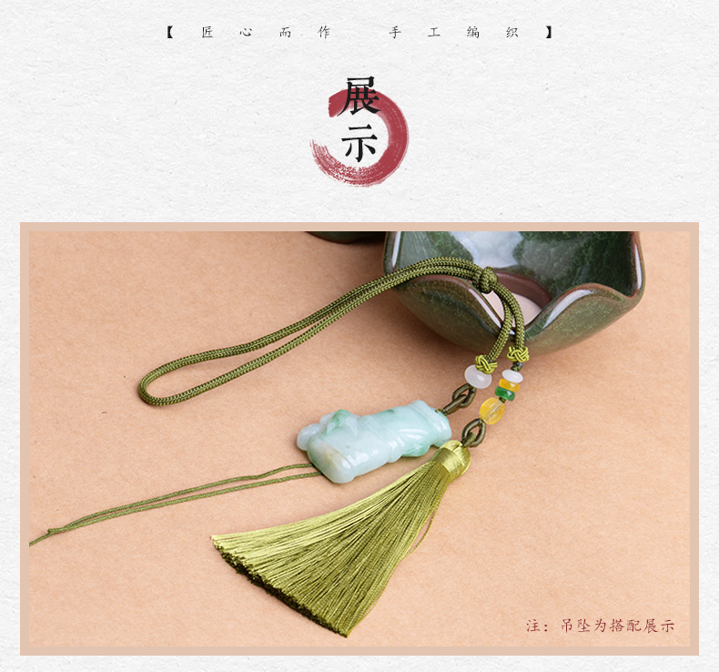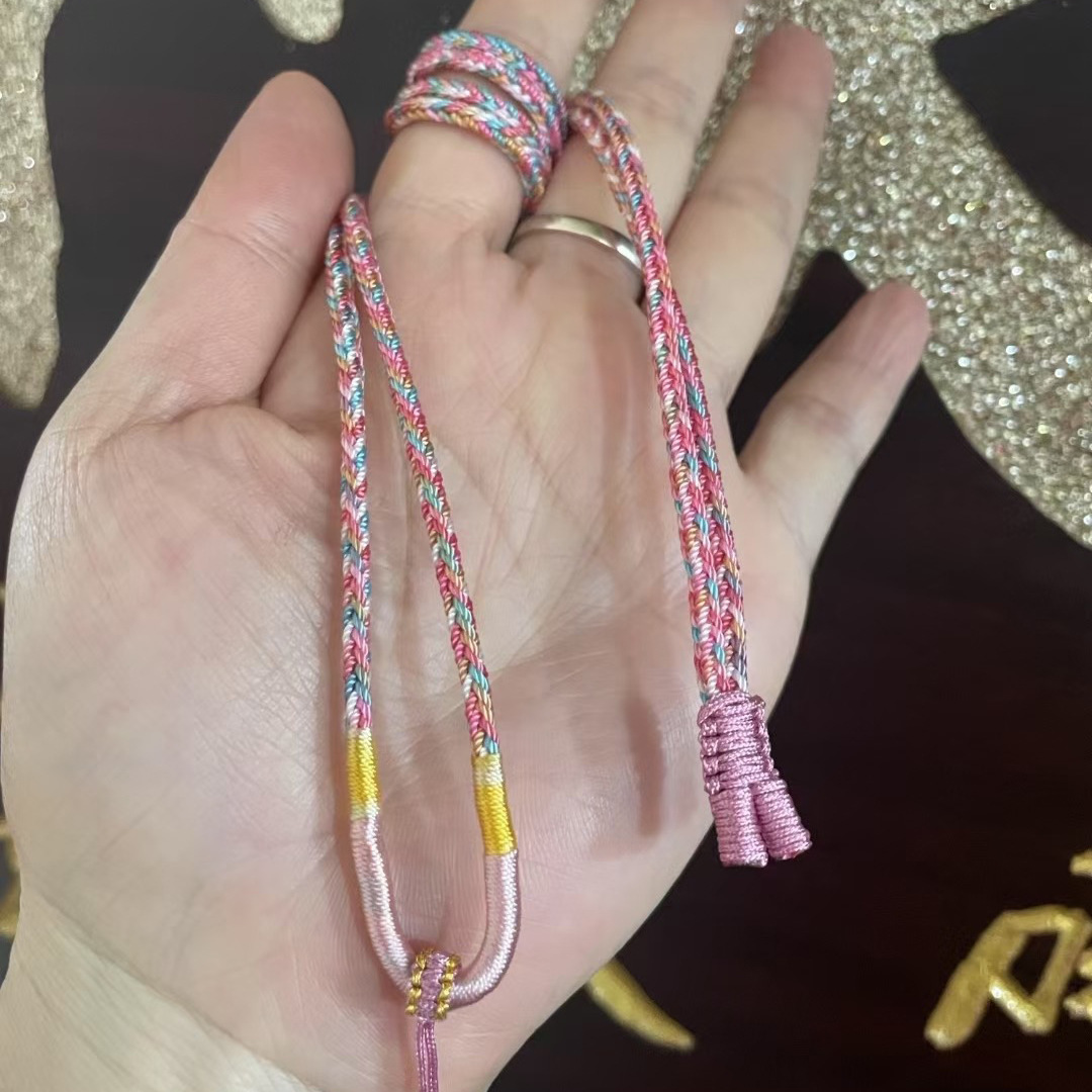 朱砂のペンダントは縄を掛けて手で編みます。