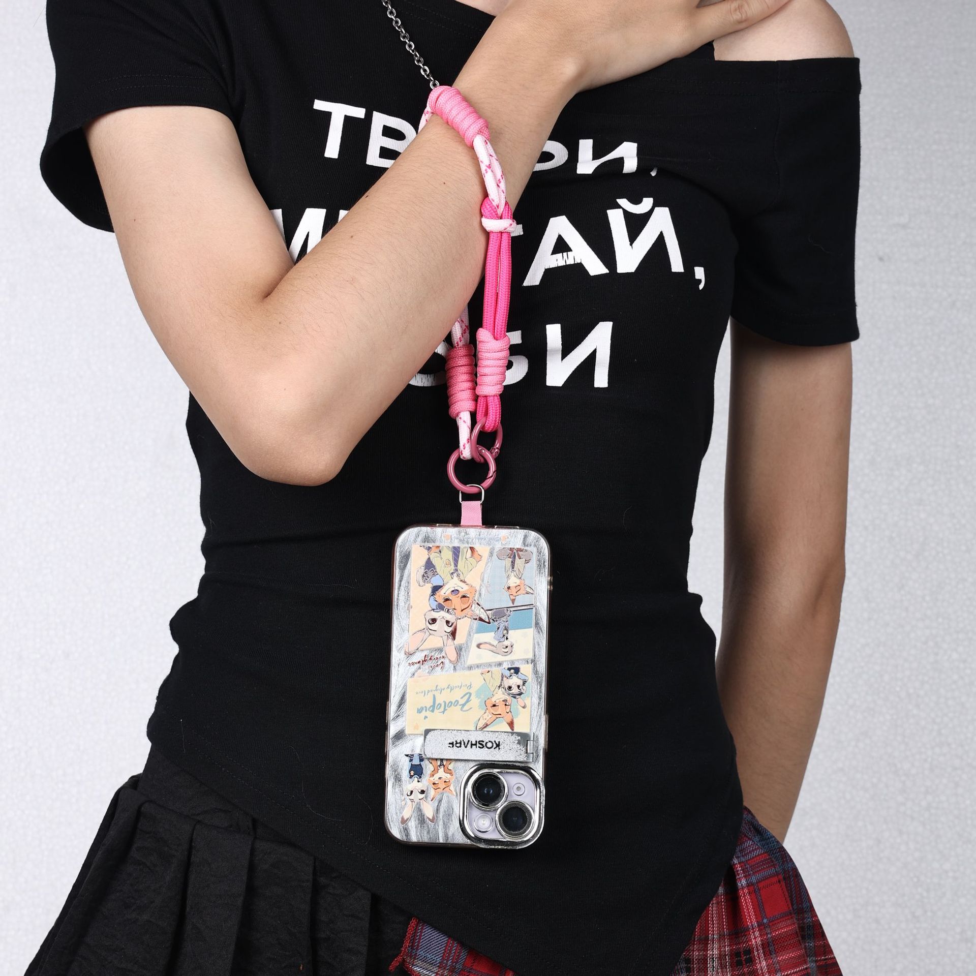 双编织绳带彩色手腕带防滑防丢可连手机壳挂件辣妹手机链甜酷拍照