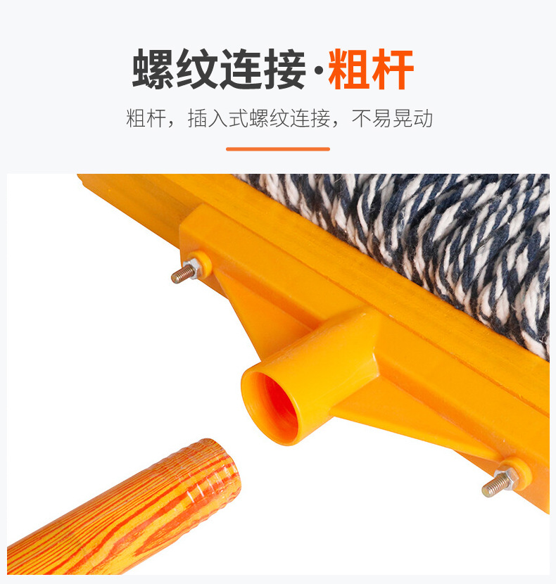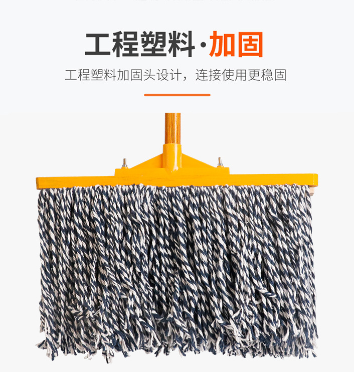 昔ながらの綿モップ、プラスチック木製ポール、モップ、学校清掃モップ、大型フラットモップ