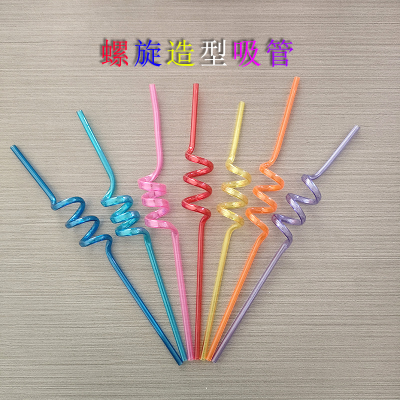 国境を越えたスポット使い捨てプラスチックストロー虹ねじ直管硬管再利用可能ストロー23センチ長さ