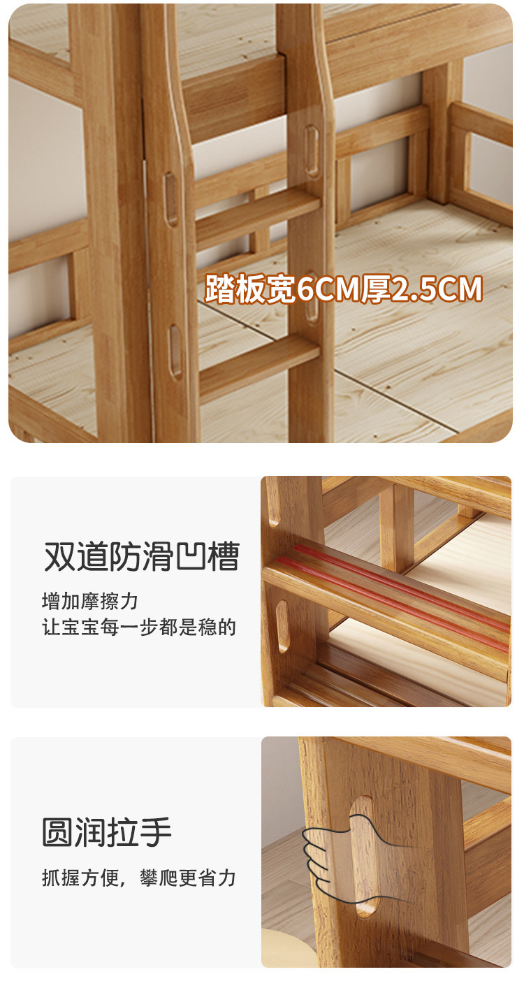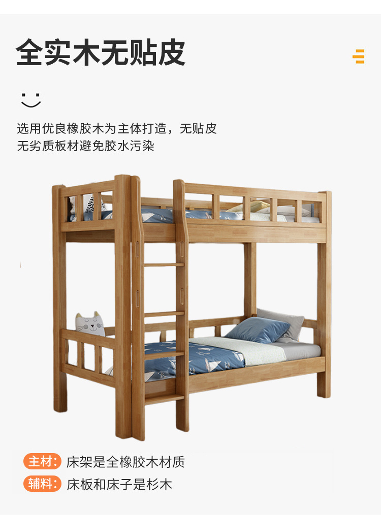 総無垢材二段ベッド ラバーウッド 大人用・子供用二段ベッド 二段ベッド 多機能二段ベッド