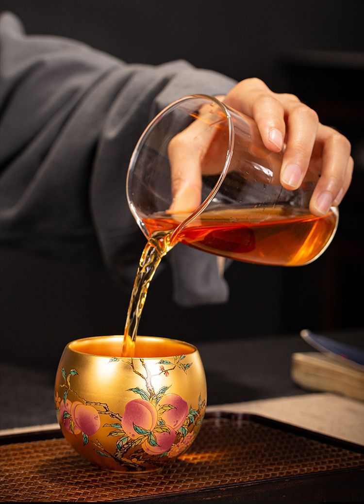 手描きの九桃の真の金の主人の杯の大家の純粋な手作りの金の杯の家庭の贈り物の杯の高級な1杯の金の杯の杯