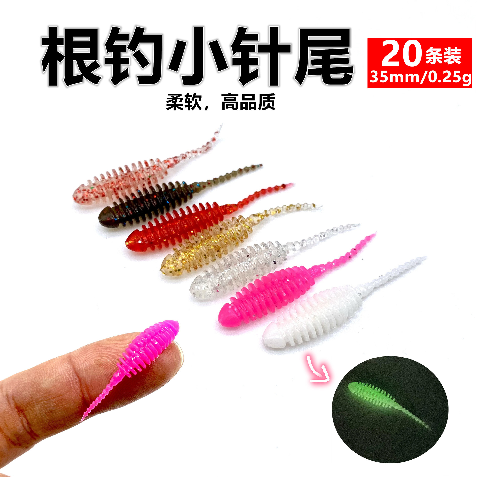 軟餌卸売り根釣り小針尾35mm微物小軟虫小軽舞虫海潮虫小オタマジャクシ夜光軟餌