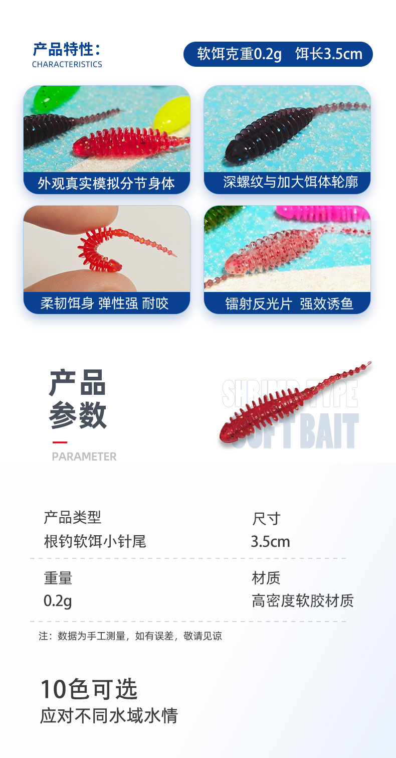 10本1包4cm/0.3gtpe浮水路亜釣り餌微物多節針尾小根釣り軟餌赤目口