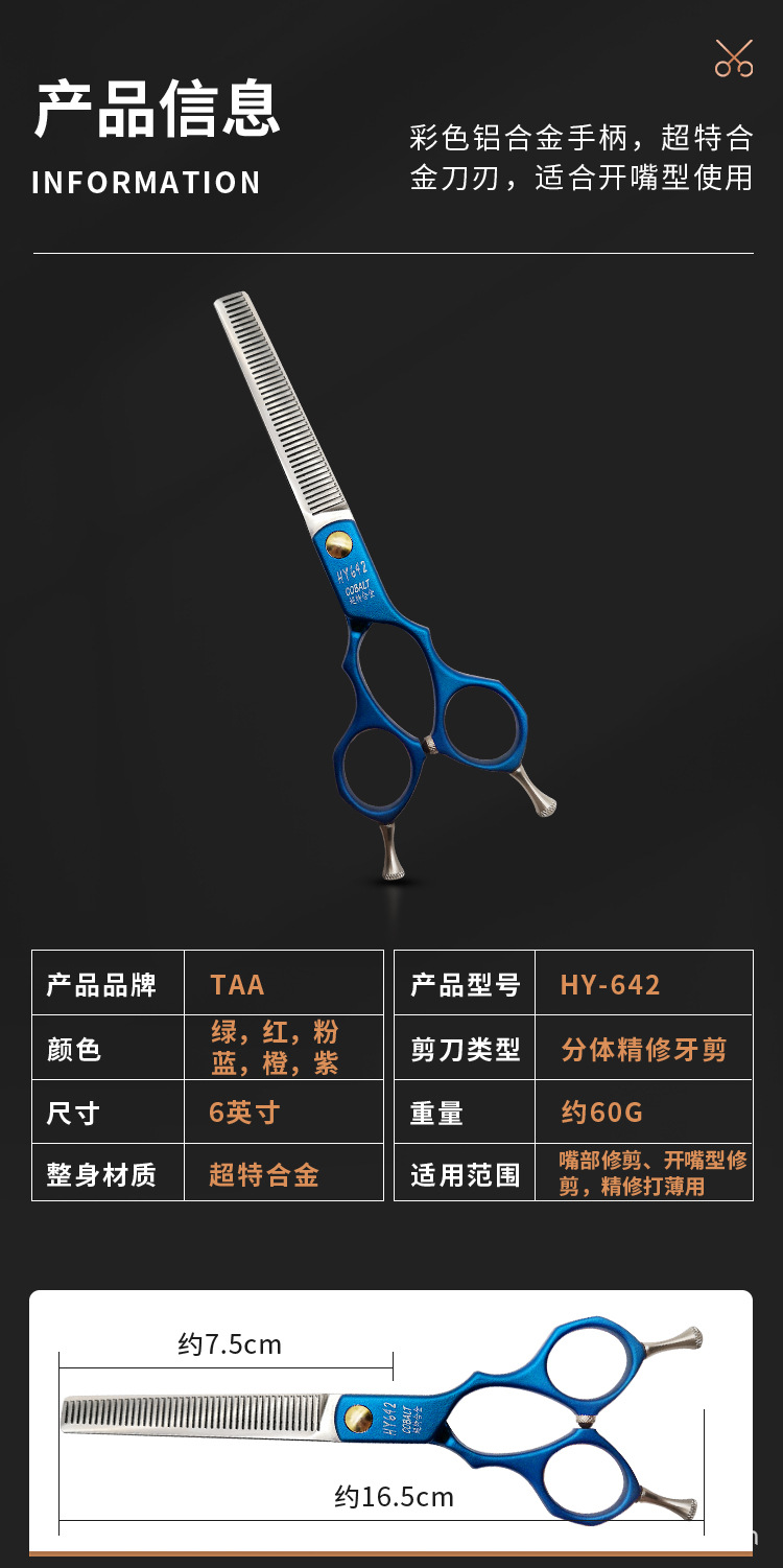 Taaカラー合金カラーハンドル歯切りペット美容精修ハサミ6インチhy642歯切り炭素鋼