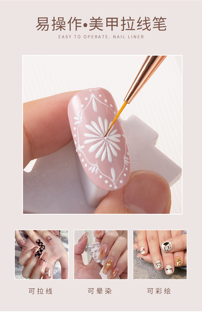 新しい越境銃黒金属棒ネイルブラシセットの色絵の線を引いて花の光を治療します。