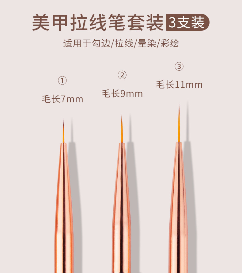 国境を越えた新しいネイルアートの彩色ブラシ透明水晶の棒の線引きペンの線引きペンの彩色ペンの3本のセット