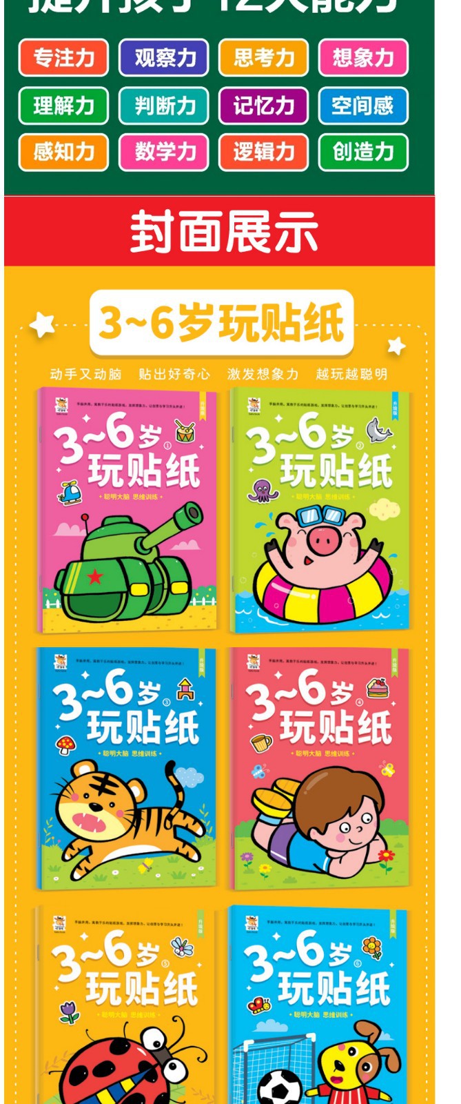 儿童专注力贴纸安静书2-3-4-5-6岁全脑开发贴贴画早教益智贴纸书