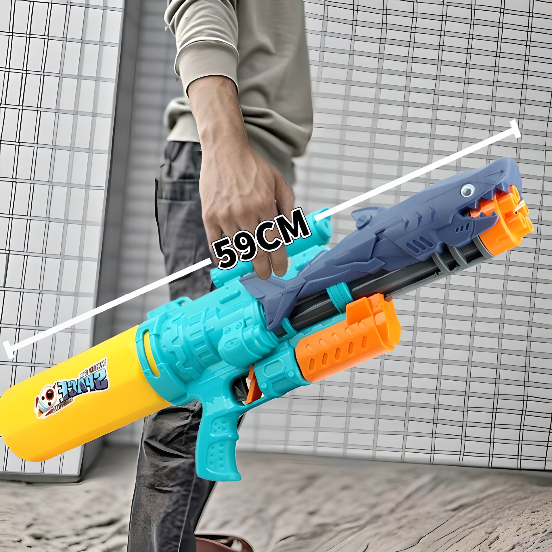 【一件代発送・送料無料】サメ型水鉄砲 プッシュ式高圧 夏の水遊び 高圧 大容量