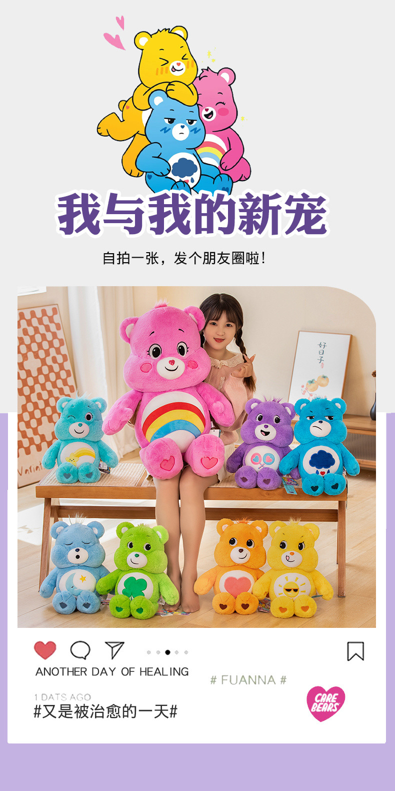 正規版care bears怒りやすい熊虹熊ぬいぐるみ愛熊かわいい人形子供プレゼント女性