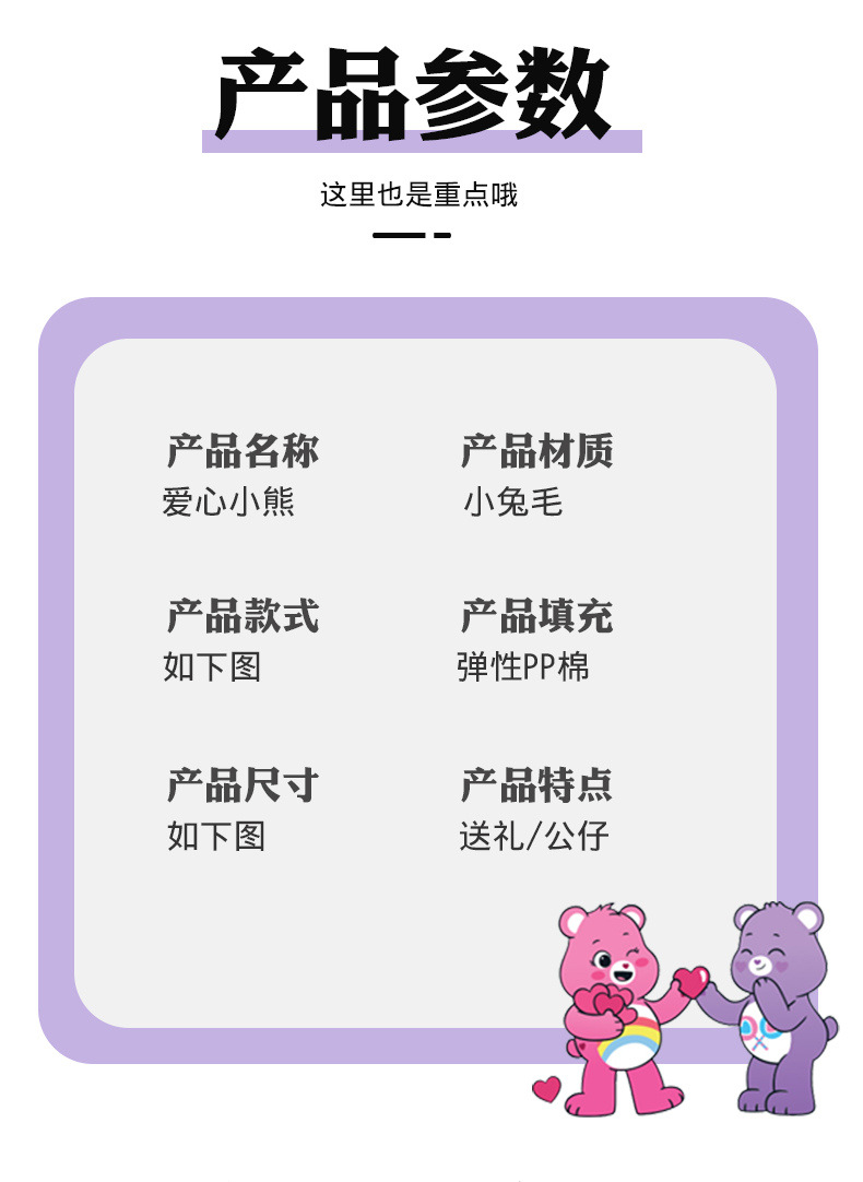 跨境新品爱心小熊毛绒玩具carebears彩虹熊公仔毛绒玩偶娃娃礼物