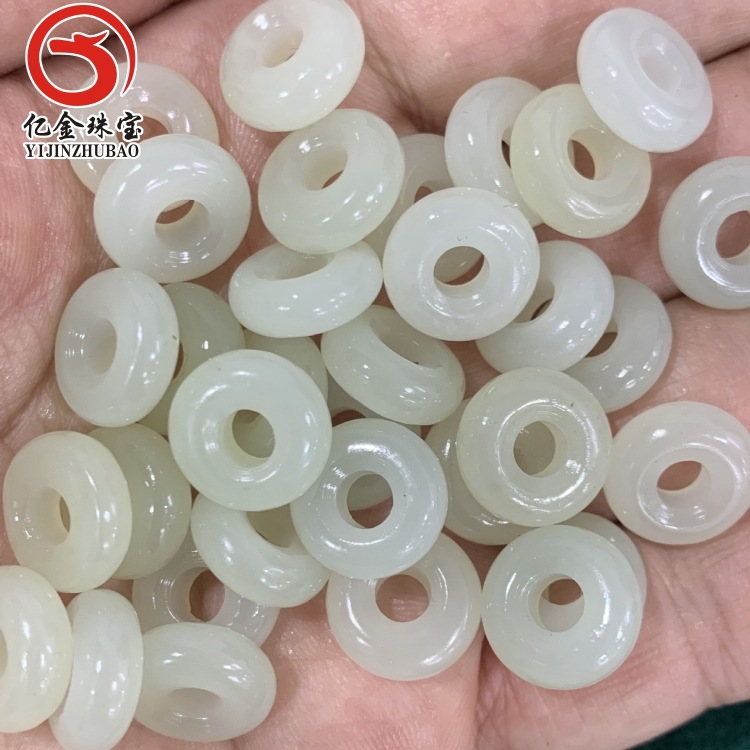 和田玉碧玉光圈面包圈配件 无黑点DIY小提溜佛珠挂件散珠玉石批发