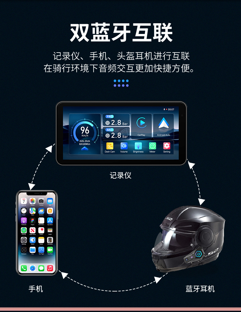 クロスボーダーのオートバイの機関車は無線carplayのリンゴの6.5インチの携帯型のGPSのナビゲーションの記録計に乗ります。