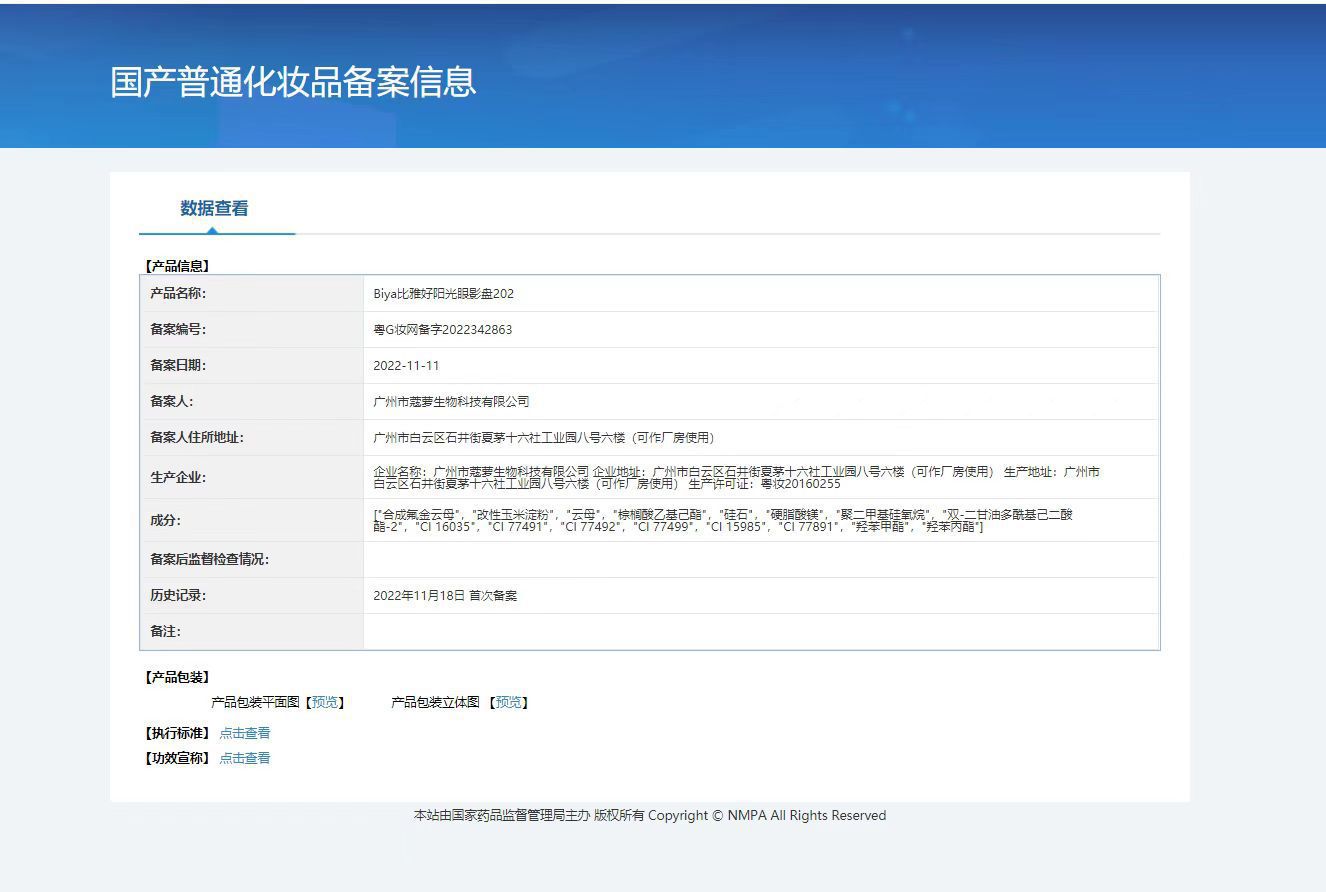 非特定化粧品届出証番号 広東Gメイクアップネットワーク準備番号 2022342863