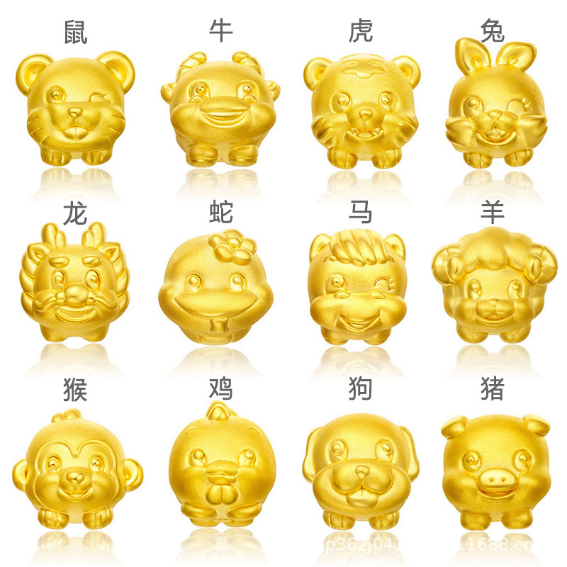 強保色沙金diy材料十二生肖ブレスレット部品数珠本命年男女生肖牛正品