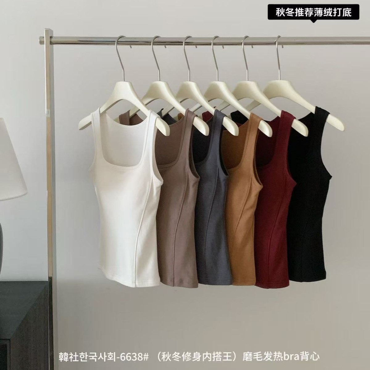 韩社6638#磨毛发热bra背心秋冬款一体杯保暖修身显瘦百搭吊带打底