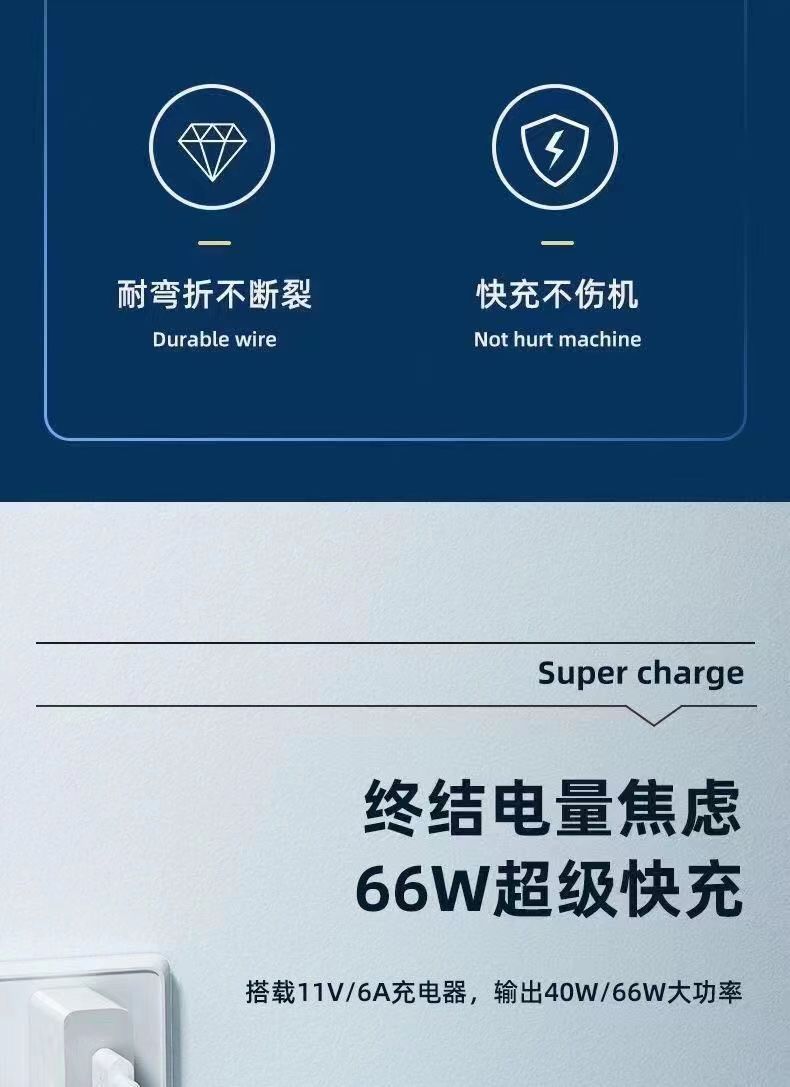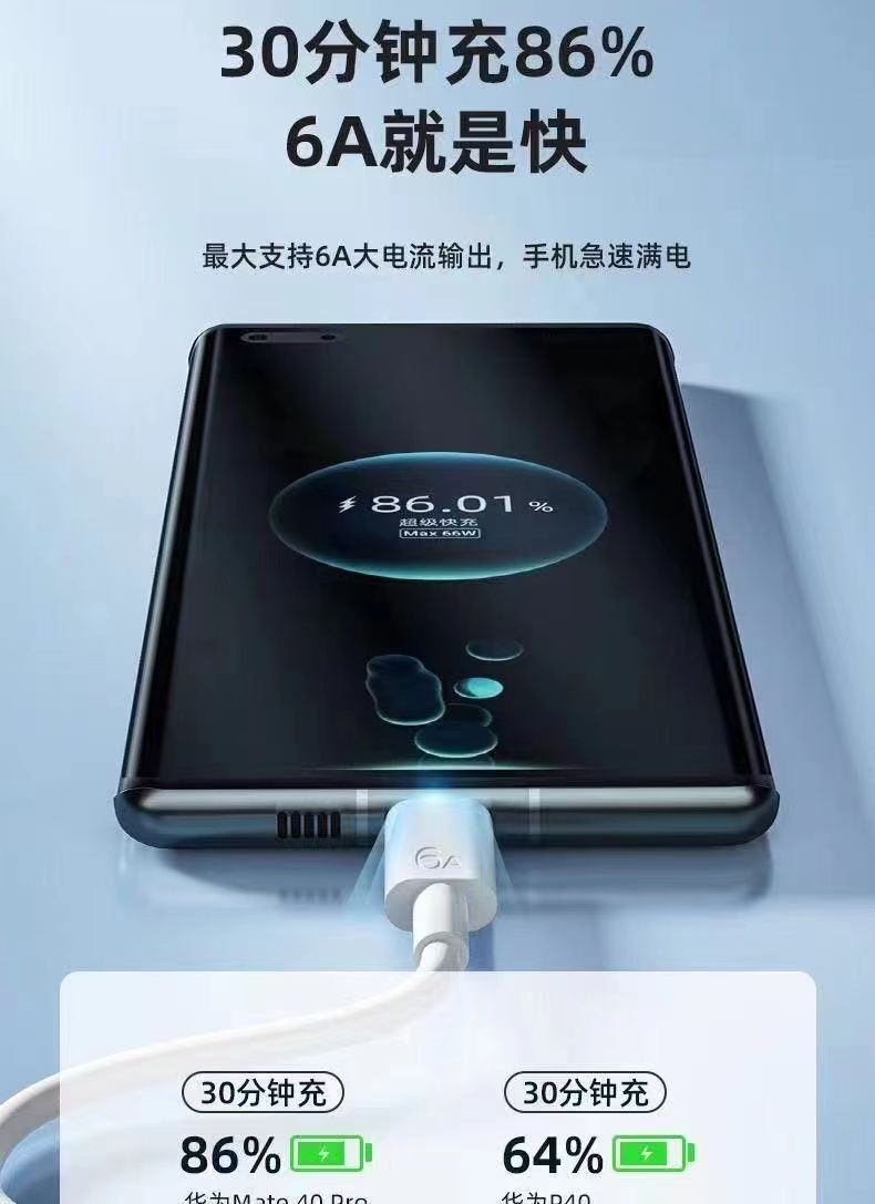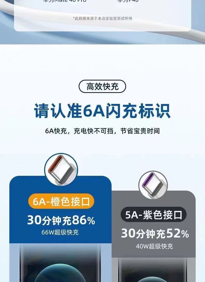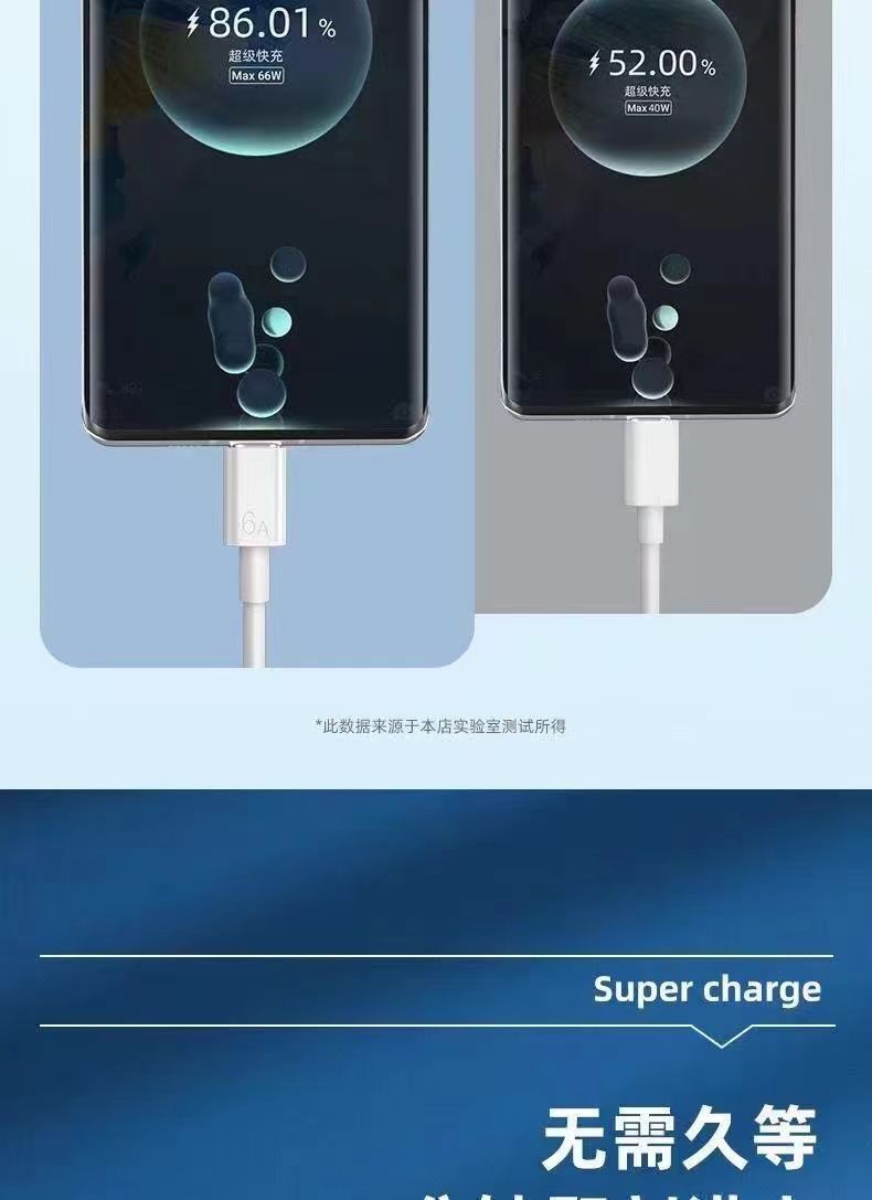 6aデータケーブルは120w華為超速充米携帯電話66w栄光type-c延長充電線を適用する